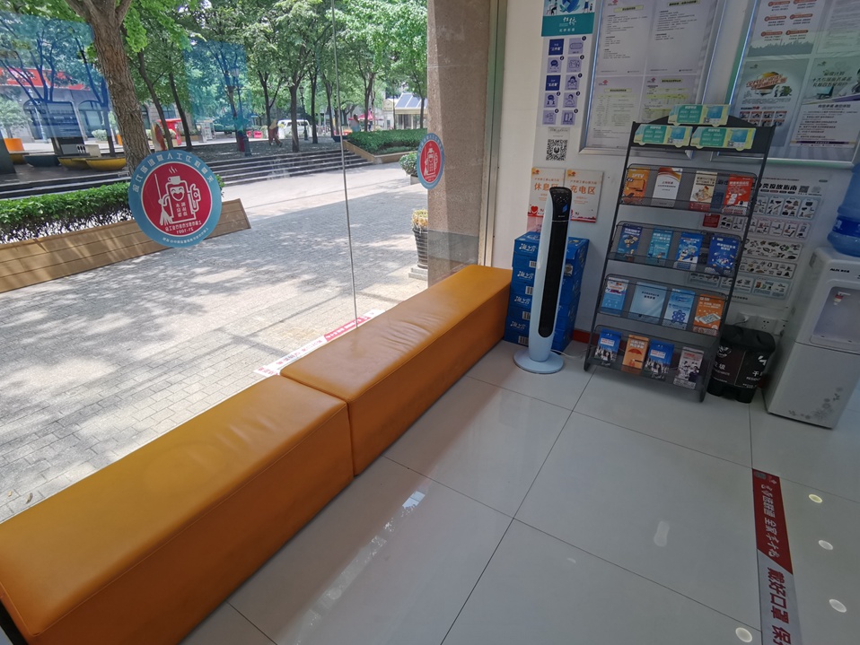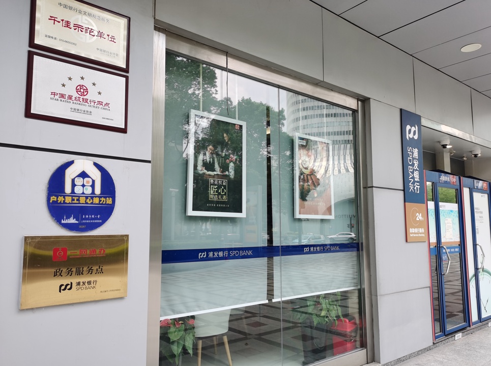站点位于虹桥商圈兴义路与遵义路交会处的浦发银行一楼服务大厅,大厅内开辟了一处温馨的区域用于服务户外职工。