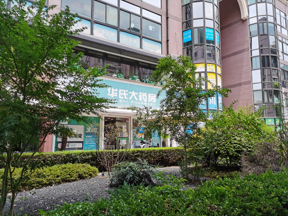 站点位于荣华东道的华氏大药房内,店内摆放的防暑用品供户外职工自取,如需其他服务可咨询店内工作人员。