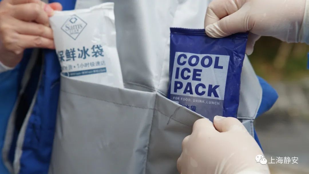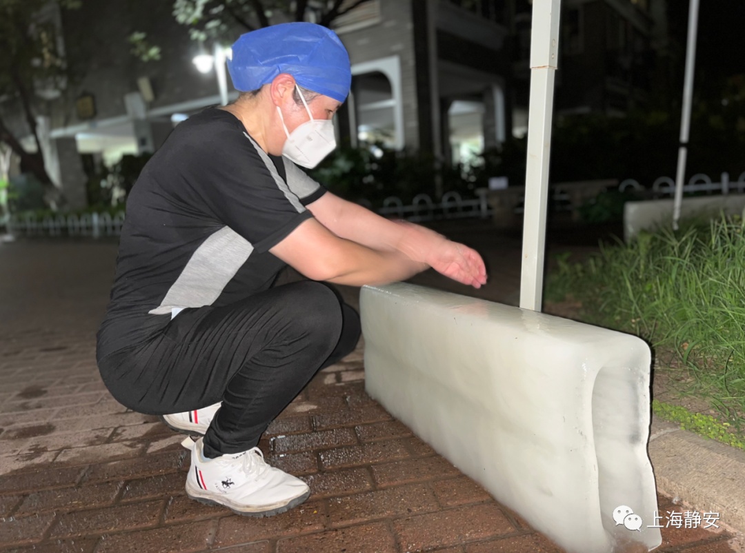 为应对高温天气,石门二路街道在组织社区居民核酸检测时,想方设法紧急采购了大冰块、冰马甲、冰贴、降温喷雾等降温物件,助力一线核酸检测工作人员清凉上阵、安全采样。