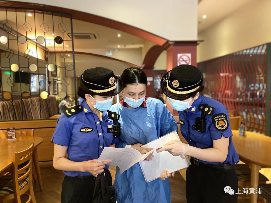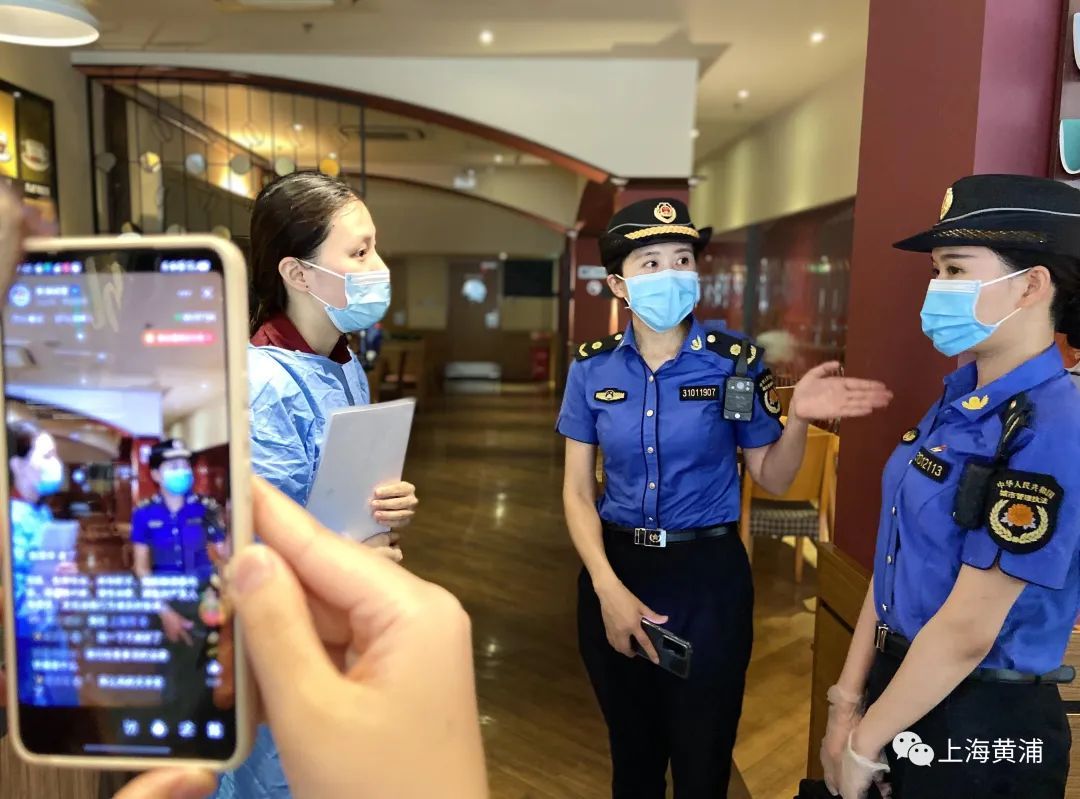 而在线下,外滩风景区中队女子班组开展了“防疫情、稳经济、保安全”走访活动。通过直播的方式,市民由“云端”跟随外滩风景区中队执法人员来到了外滩某咖啡店,指导店家工作人员做好健康情况记录、“场所码”和“数字哨兵”张贴和使用、来访人员到店登记、工作人员规范佩戴口罩以及落实环境消毒,告知店家要严格落实疫情常态化管理的各项措施,统筹兼顾好疫情防控和企业日常经营。