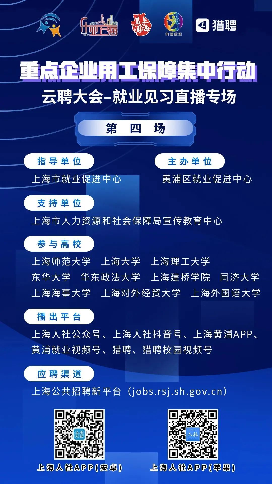 为贯彻落实党中央、国务院和市委、市政府关于保就业、稳就业的决策部署,做好本市重点企业用工保障工作,本市正在持续开展稳岗纾困服务攻坚百日行动——重点企业用工保障集中行动。将于7月19日15:00举行就业见习直播带岗——黄浦区专场活动。