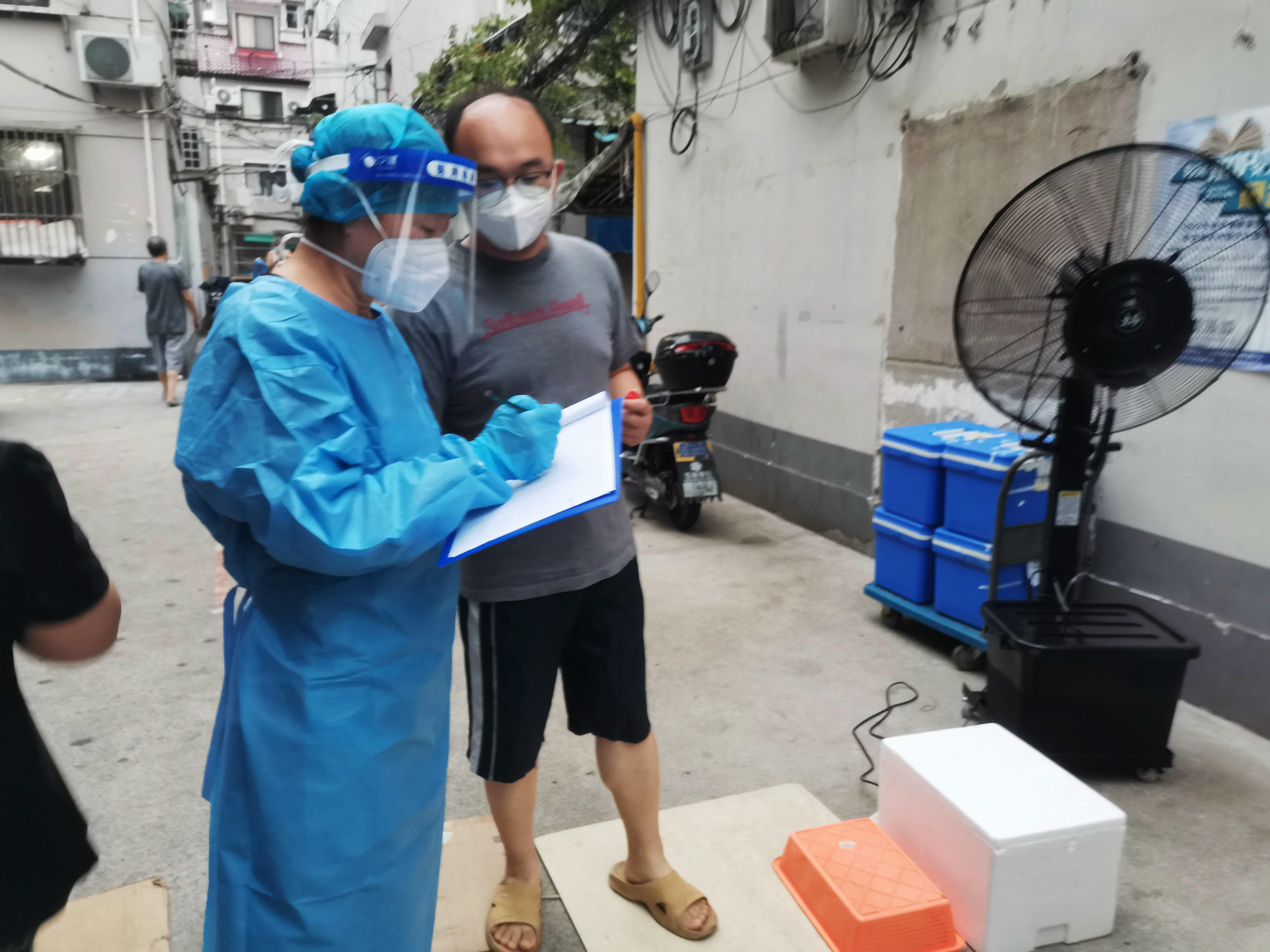 “防护装备都穿好了吗?电扇和冰块都安排上了吗?”老城厢豫园街道目前仍有大量的老旧公房小区和旧式里弄。尤其在四新居民区,老年人口众多、外地来沪人员流动性大,都成为此次暑期社区大筛工作中的难点。