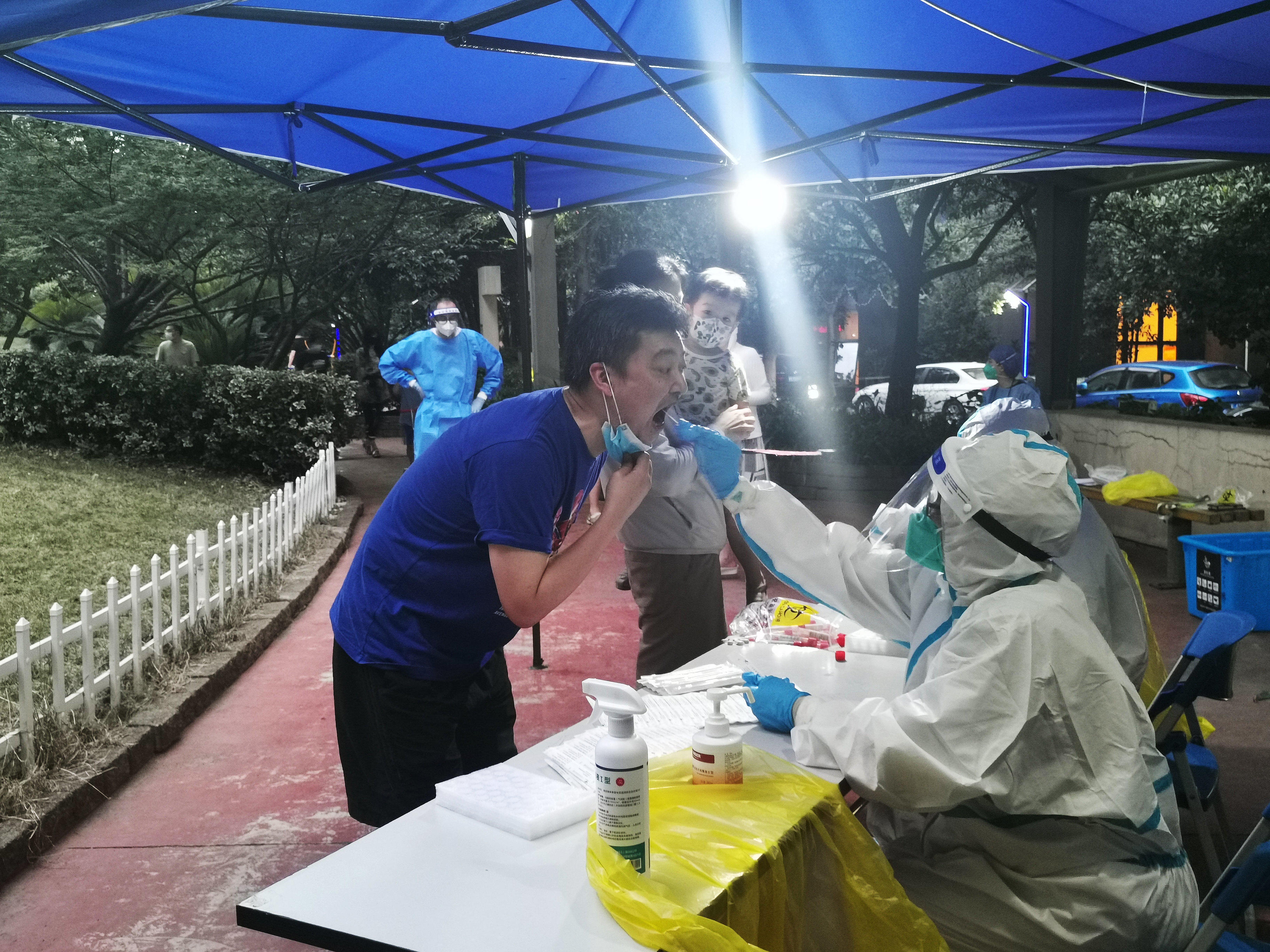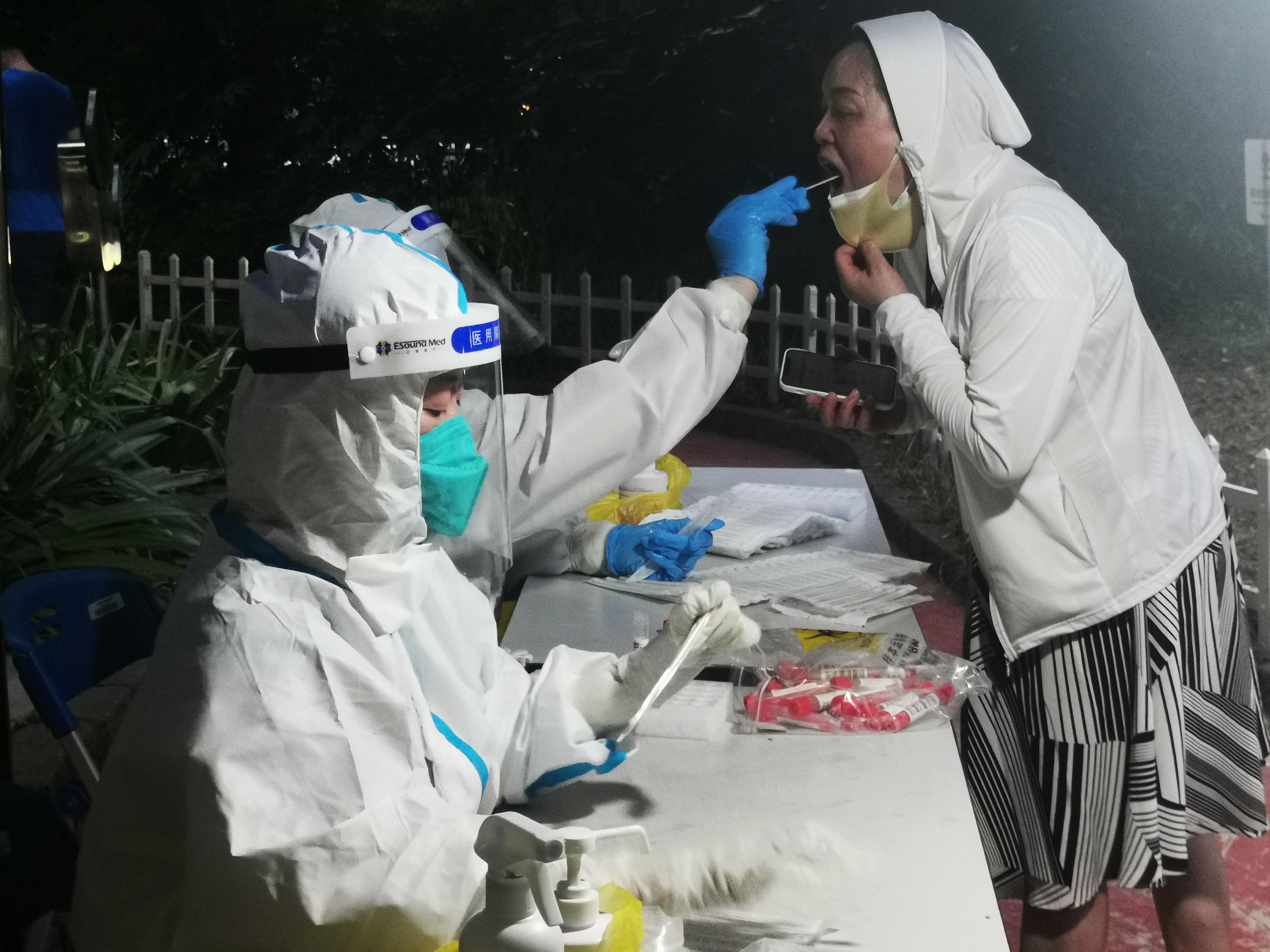 “我们等你!”夜色渐浓,核酸检测人员依然守候在采样点
