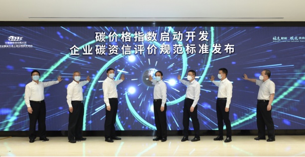 2022中国国际碳交易大会上首个碳资信标准——《企业碳资信评价规范》正式发布。上海市生态环境局党组书记、局长程鹏,上海市金融监管局副局长林文杰,上海证券交易所副总经理刘逖,上海联交所党委书记、董事长周小全,上海联交所党委副书记、总裁余旭峰,上海联合产权交易所监事会主席倪耀明,上海环交所董事长赖晓明共同启动发布。
