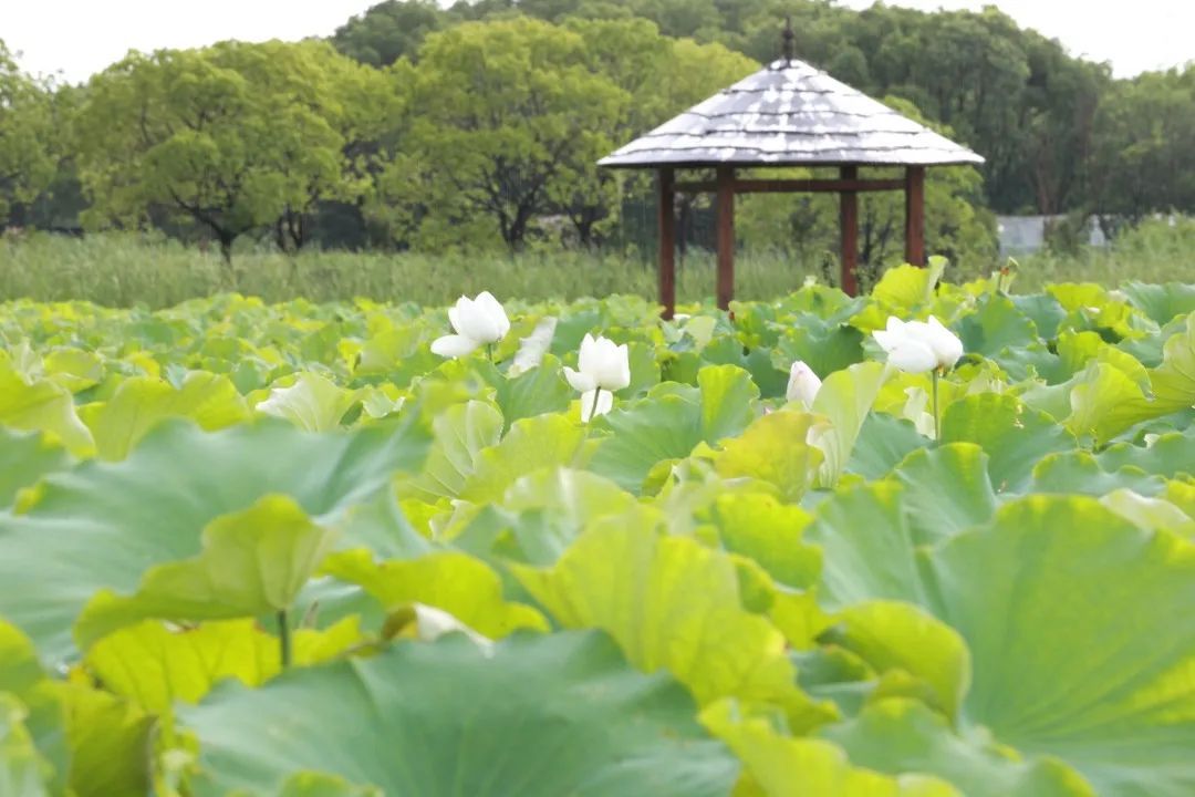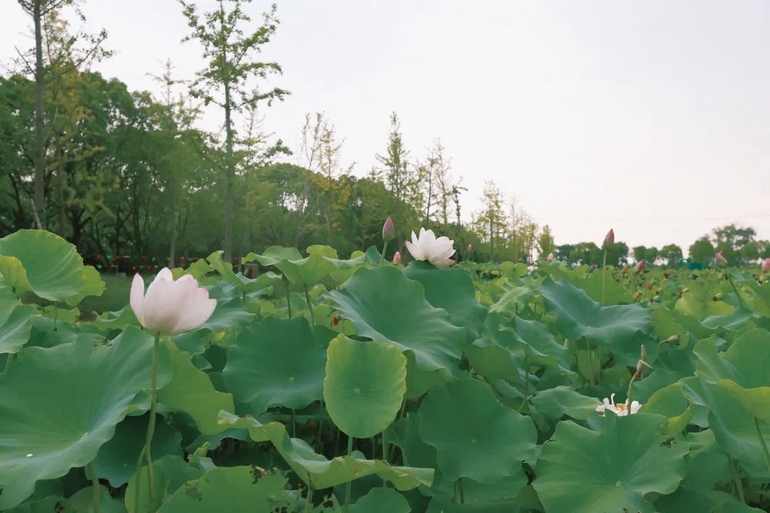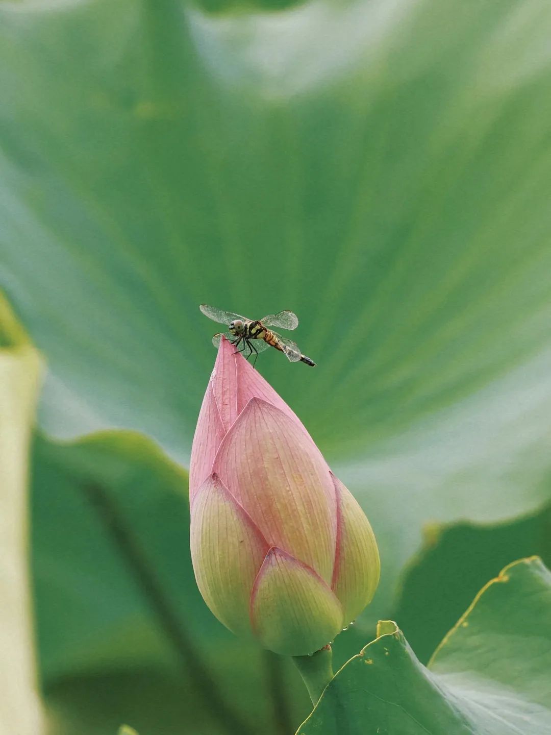 在这里,还可以偶遇到“小荷才露尖尖角,早有蜻蜓立上头”的小清新场景……空气中凝结着的水汽,与湖边的绿树、池内的荷叶相映成趣。遇上雨后降温,来嘉北郊野公园荷花池打卡吧~