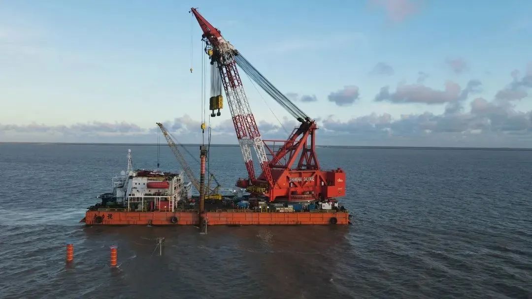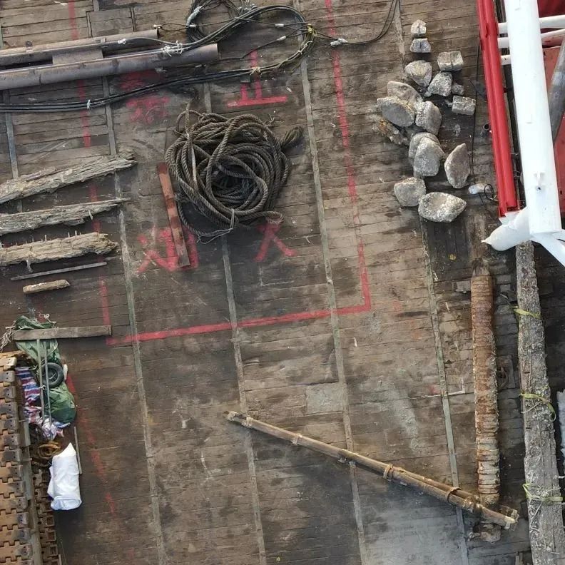 7月5日,在古船遗址现场,“大力号”高质量完成四根定位桩的沉桩,经定位人员勘测,定位桩垂直度小于0.5%、绝对位置误差小于31厘米,绝对位置和垂直度均达到设计要求。这标志着长江口二号古船整体迁移预处理阶段工作圆满完成。