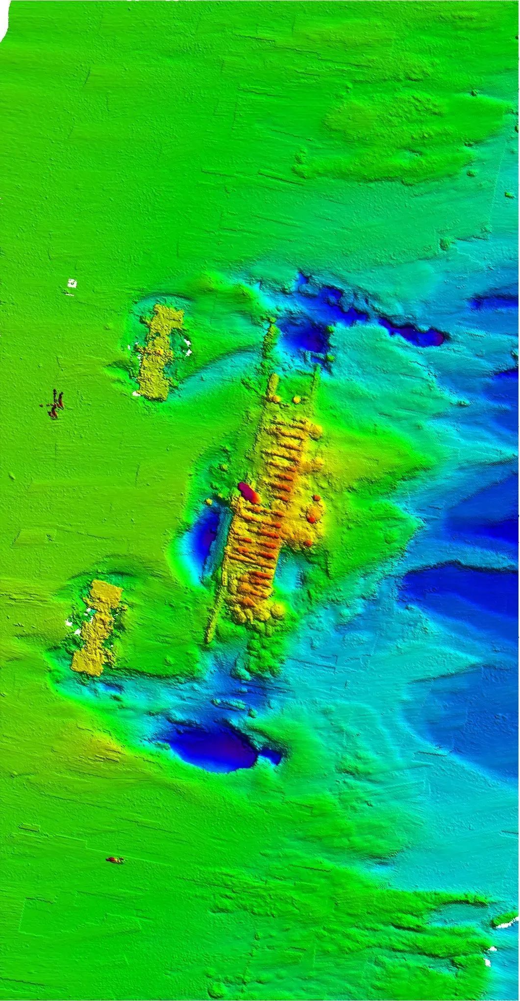 6月下旬,项目完成古船多波束精细扫测,明确了弧形梁端板沉放位置并预先挖掘了2条长20米、宽1.3至3米、深度超过3米的端板沉放沟,为后续整体打捞端板沉放施工排除了潜在的障碍。