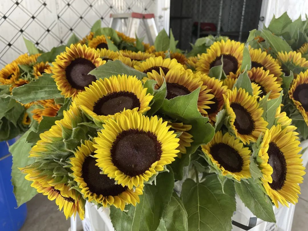 七月正是向日葵、大丽花等花卉的盛放期。在崇明丽辉农场,花农们行走在花地里,手指翻飞间,迅速将一朵朵含苞待放的鲜花摘下。包装车间内,工人们正按照鲜切花的品类包装,准备发往市区。