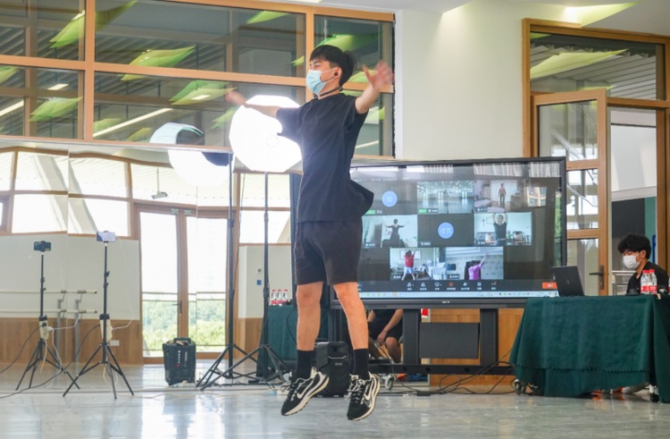当天上午10时30分,舞蹈教室内,“最炫民族风藏族舞”课程开课了。通过大屏幕,舞蹈编导申子瑶一边进行演示、一边看着学员们的动作,并即时讲解分析。“由于学员大部分是老年人,所以我们要帮助‘爷叔’‘阿姨’们尽快适应网课的形式。”工作人员介绍,考虑到年长学员普遍不善操作手机,因此在上课前一天,提前在微信群中进行交流,教他们打开摄像头、麦克风的方法;课程开始后,还要时不时提醒学员跟着学跳舞时不要跳出镜头外,这都需要花费更多精力与耐心,进行细致地沟通。