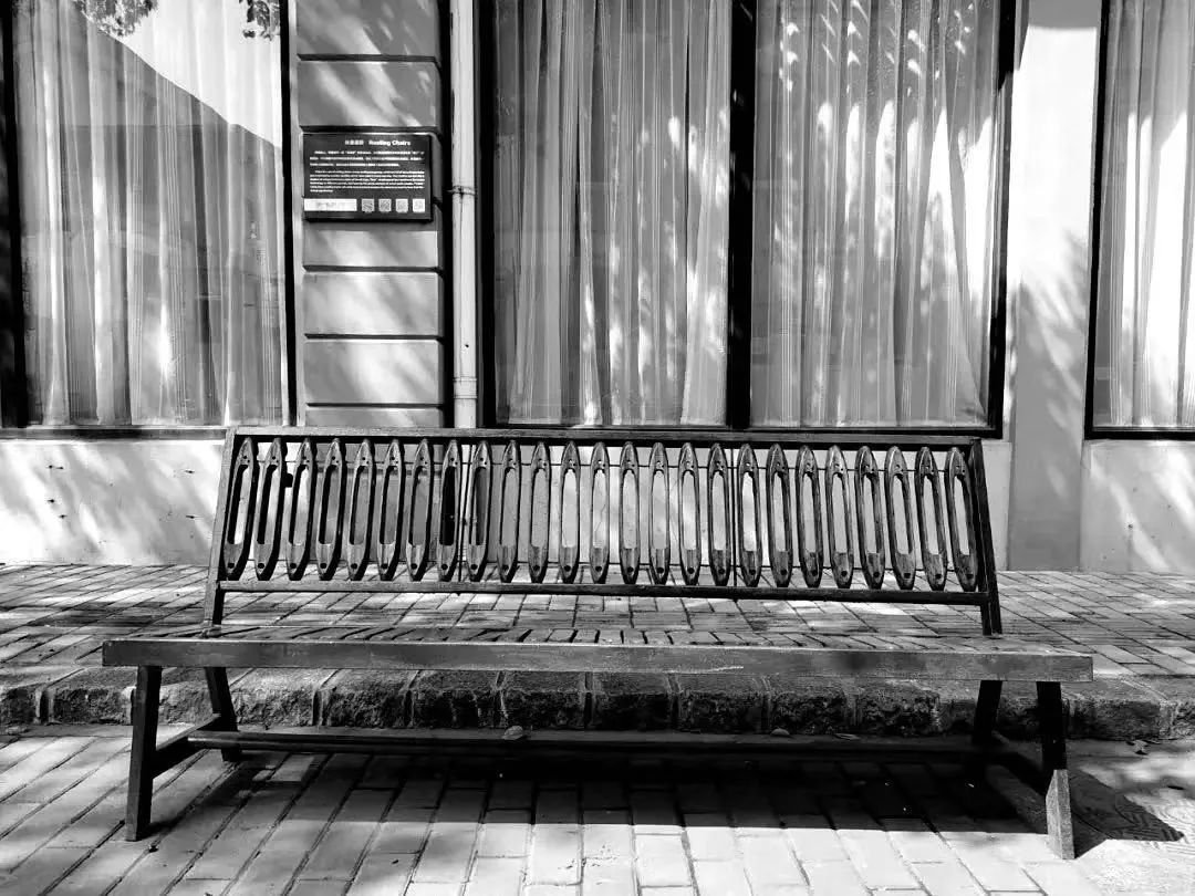 园区内的长椅也与众不同,椅背和椅身由“纱锭”和“梭子”的纺织机工具拼接组装而成,工业范与艺术气并肩。