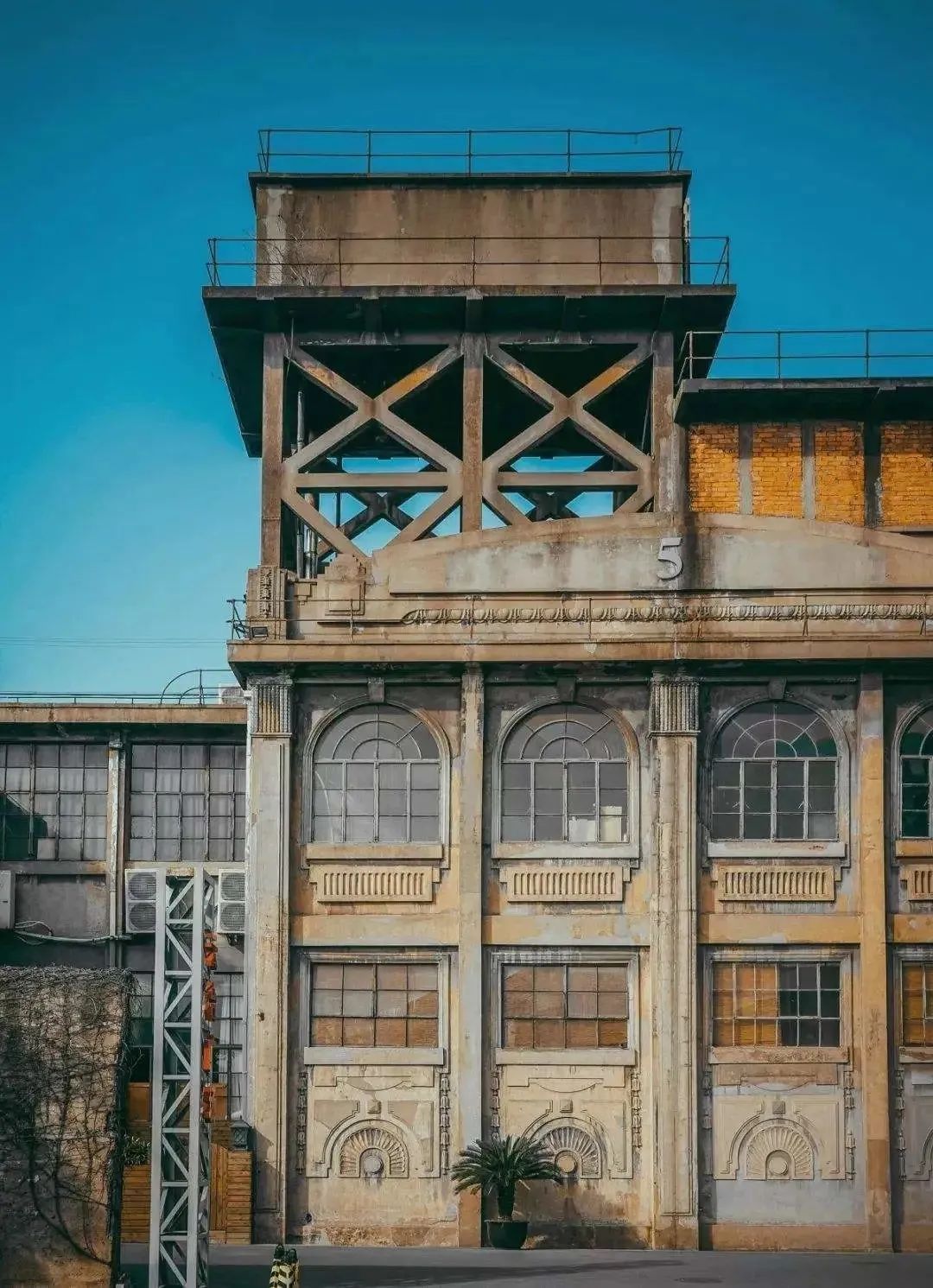 5号楼,建于1929年,二层混合结构,建筑屋顶装饰带有巴洛克建筑艺术风格特点,曾是当时远东地区长度最长的厂房,如今底层大厅已改造为“园区规划展示馆”。