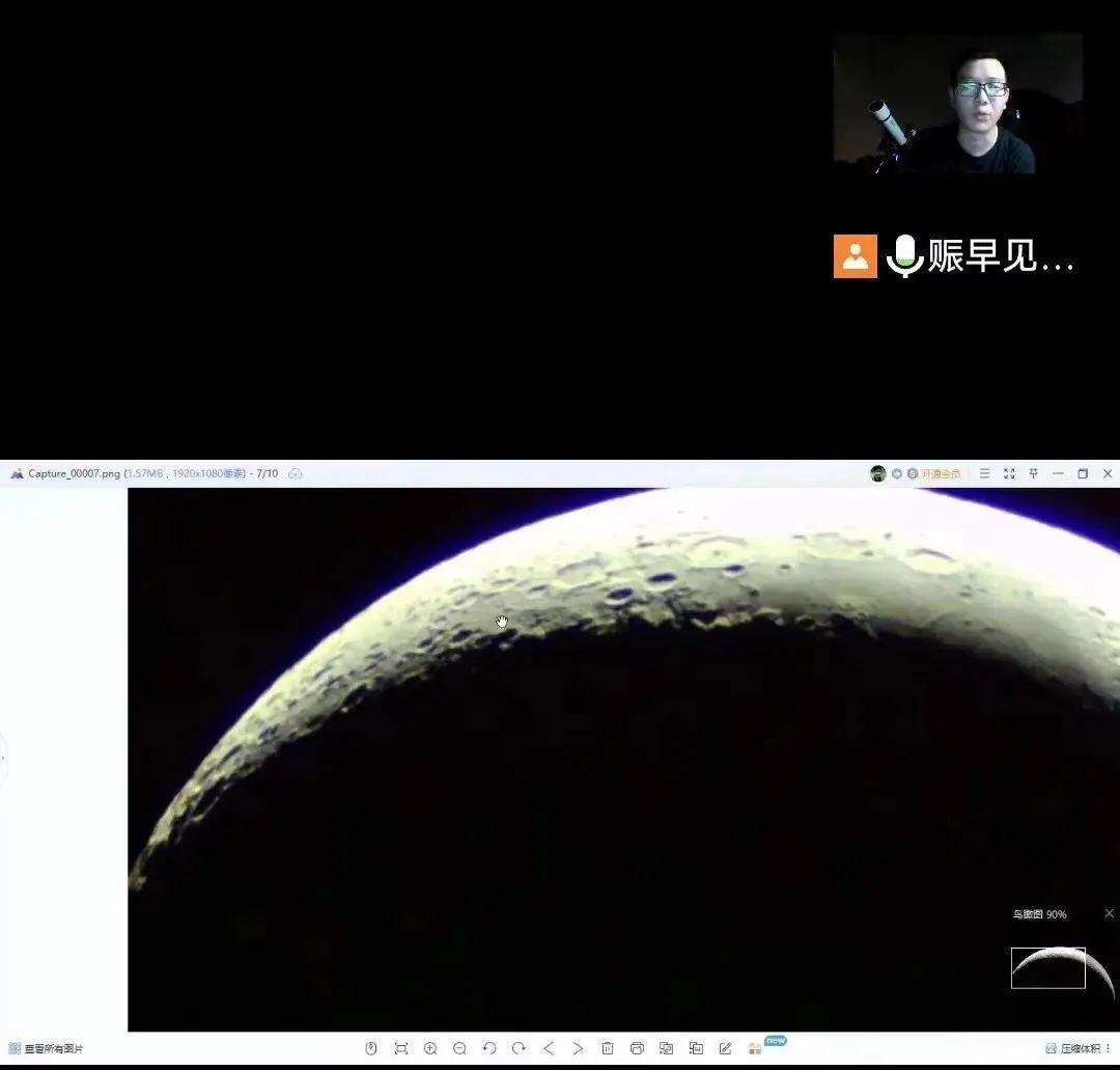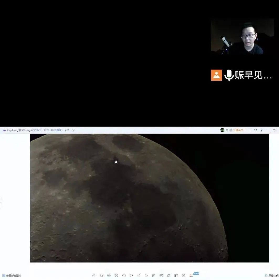 通过望远镜实时抓拍月亮的形态,向大家科普月亮的相关知识,比如:月亮上的陨石坑是怎么形成的?哪些阴影部分是河流?直播持续了两个多小时,孩子们意犹未尽、直呼过瘾。