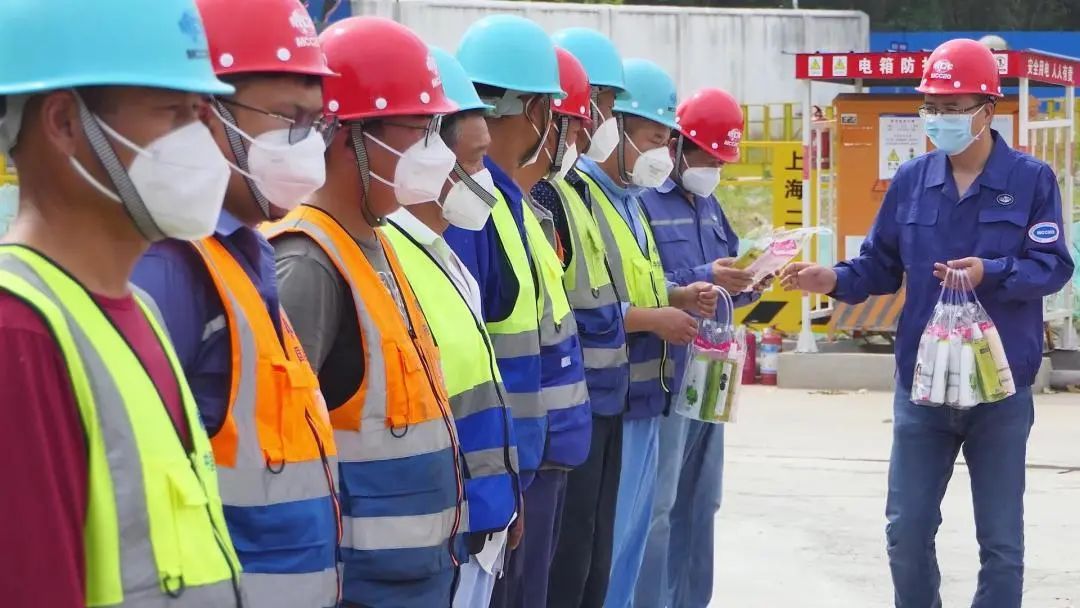 近日,在吴淞创新城宝杨路首发项目建设工地上,工人们领到了花露水、洗涤用品、毛巾、饮用水等防暑降温用品,这给他们的炎炎夏日送来了一丝清凉。