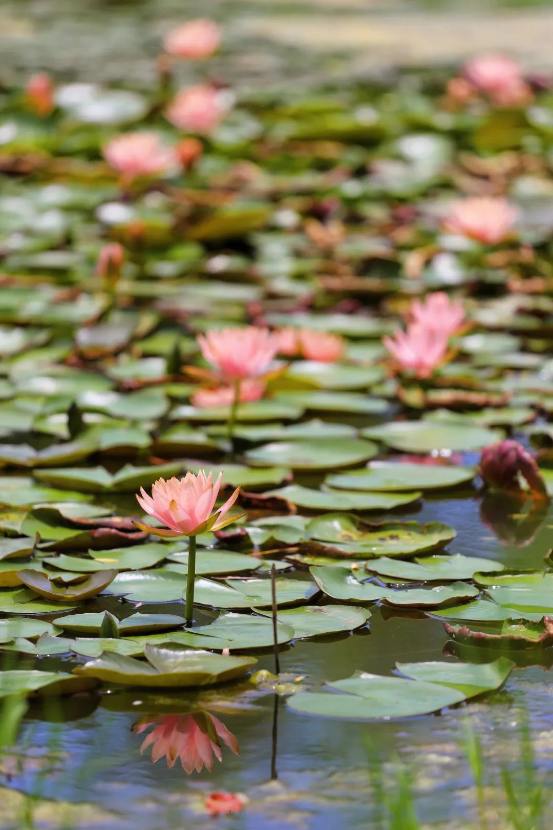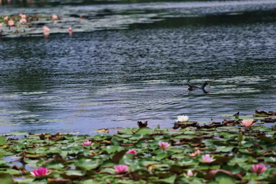 眼下正是睡莲的盛花期,在阳光下清新淡雅的花朵恣意舒展,莫奈笔下的睡莲,利用光与影衬托出花朵的层次,充满了迷人的意境,而吴冠中笔下的睡莲浅花迷人,目悦神怡,那莲叶看似随手勾勒,笔墨韵致皆到天成。