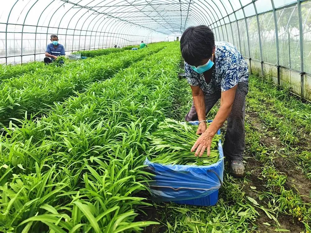 除此之外,合作社还对在地蔬菜品种进行调整,用空心菜、米苋、苦瓜、丝瓜、秋葵等耐高温蔬菜替代原来的鸡毛菜、小青菜等。“这几个耐热品种生长速度快,品质也有保证。”基地生产技术负责人杨梅表示。合作社大棚上方覆盖了黑色遮阳网,棚内喷淋设施也已准备到位,随时能为蔬菜降温。另外,基地还在原来的数量上增加了1倍的蔬菜在田面积,利用轮茬种植方式,保证每天的蔬菜产量维持在5吨左右。