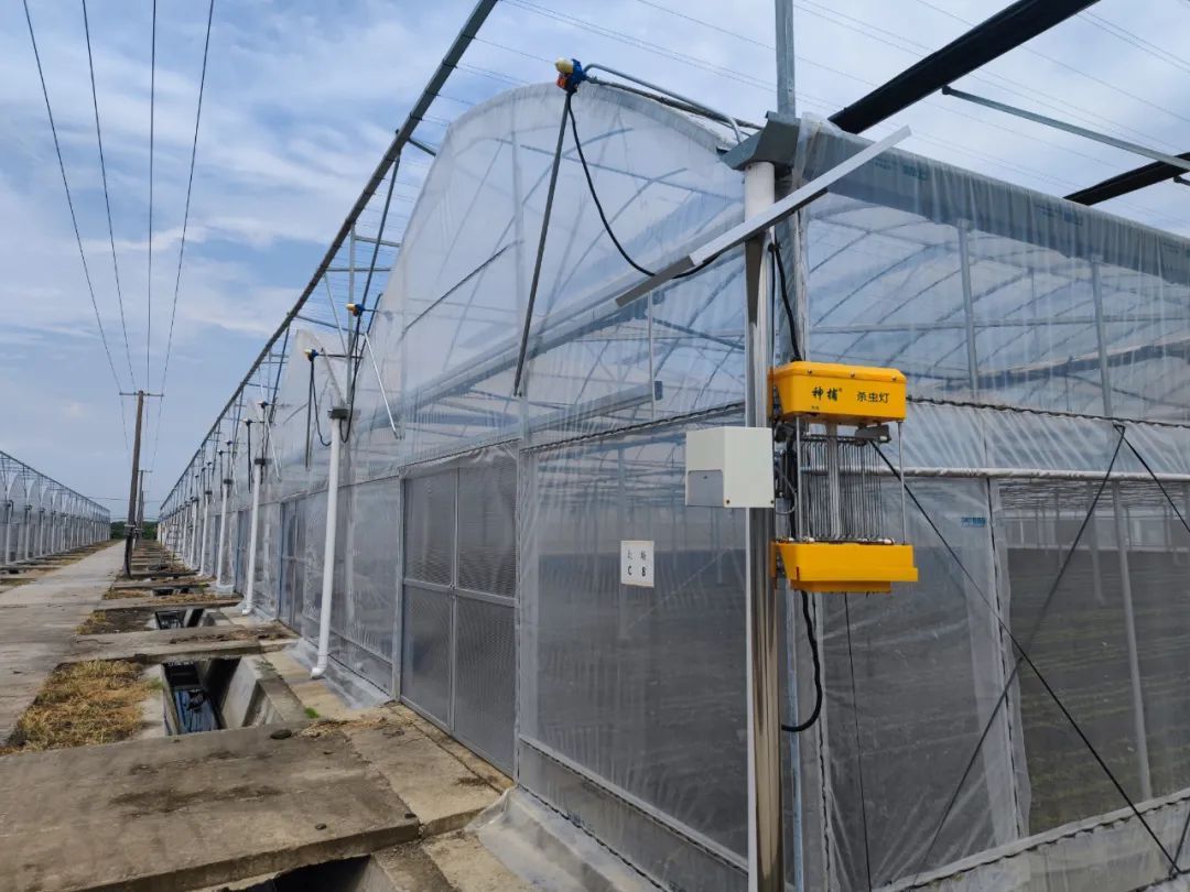 今年由于梅雨季降水少,病虫害有所增加。合作社目前设置了杀虫灯、诱捕器、黄板等防虫害设备,还在130多个大棚周围增加防虫网。