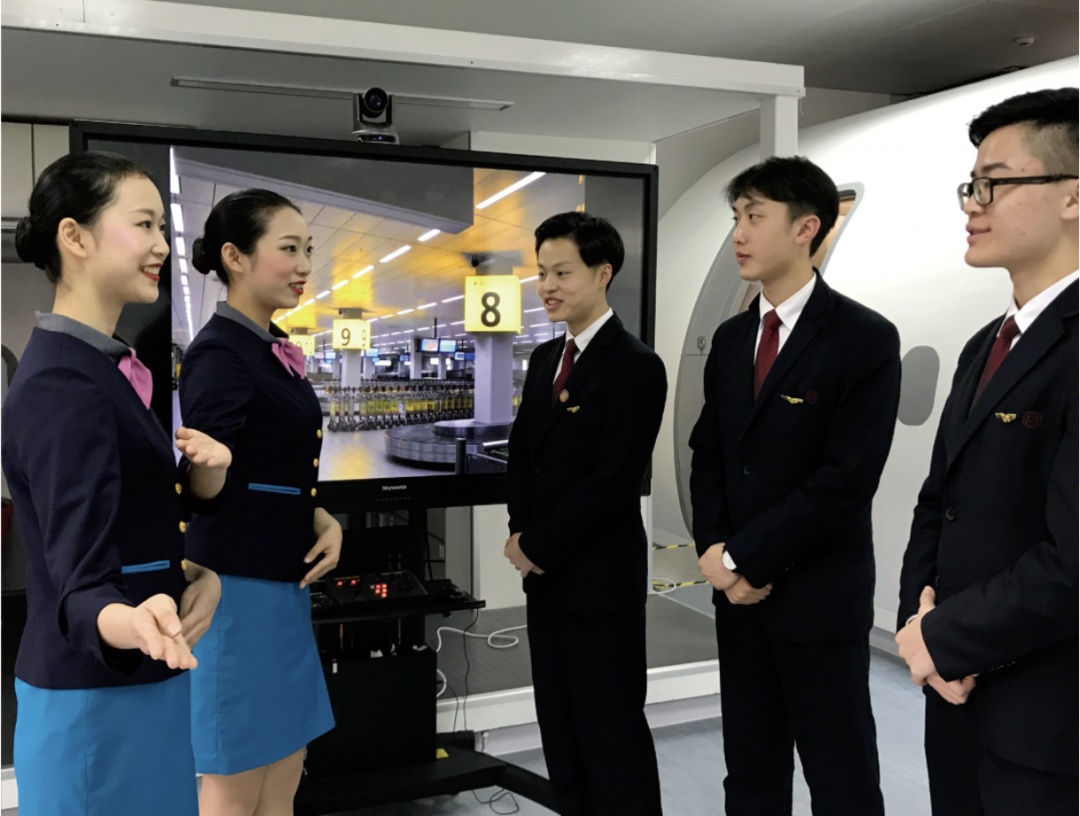 和其他专业相比,学校的中高职贯通空乘专业更加注重语言技能,特别是外语能力的培养。在中职阶段,除了大量的英语课程以外,还有日语课程的学习,经过3年中职校与2年高职的学习,学生逐步成长为掌握流利外语的民航服务型人才。