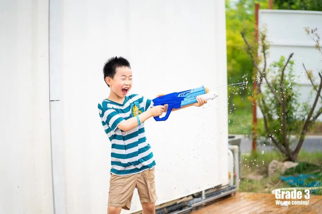 “凉快多了,夏天这样玩才爽!”慧跃星自然营地的暑假限定项目“水枪大战”也深受欢迎,孩子们可以肆意在大草坪上奔跑,感受“水枪大战”带来的凉意,找准时机、目标即刻出击,清爽、欢乐、自得,所有暑意都消散在了一阵阵欢声笑语中。