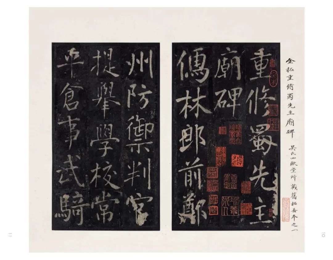 《重修蜀先主庙碑》亦为吴湖帆旧藏金刻金拓孤本,墨色淳古,锋颖如新,传世甚罕。