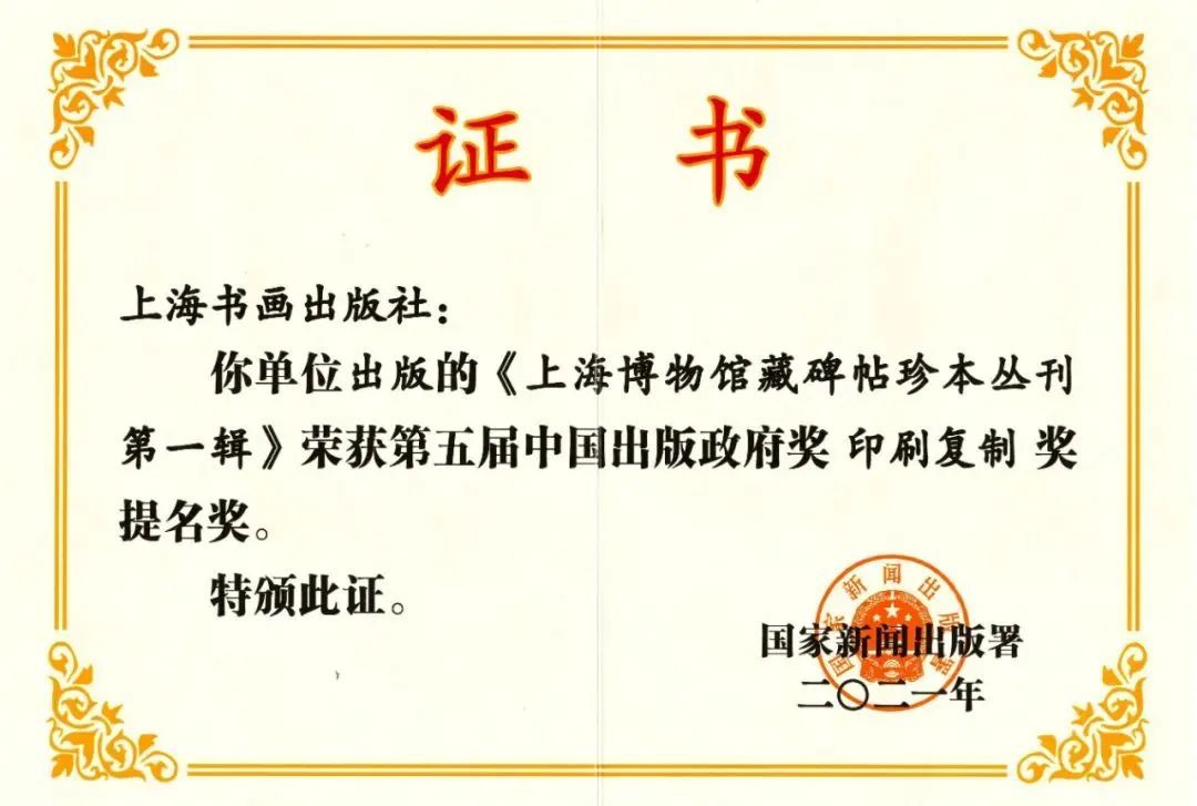 《上海博物馆藏碑帖珍本丛刊》是首次对上海博物馆碑帖珍本进行全面整理和研究性发布,“丛刊”第一辑入选“十三五”国家重点出版规划,并获得第五届中国政府出版奖印刷复制奖提名奖。