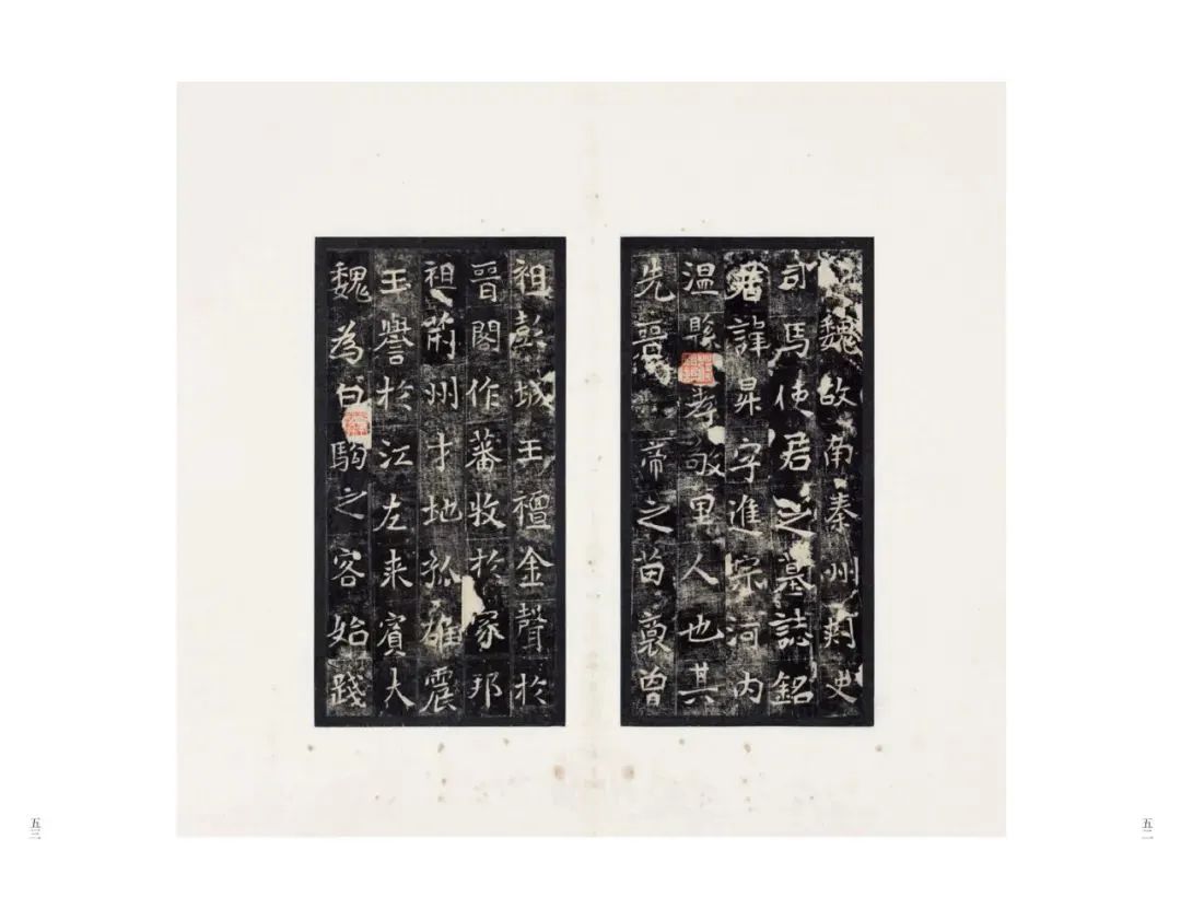 第三、四辑所刊碑帖中有三件为传世孤本,即唐张旭《郎官石柱记》、南朝梁《萧敷敬妃墓志合册》、金王庭筠《重修蜀先主庙碑》。此三件碑刻原石久佚,世间仅有此一份拓本传世,其珍贵价值不言而喻!