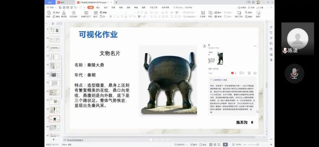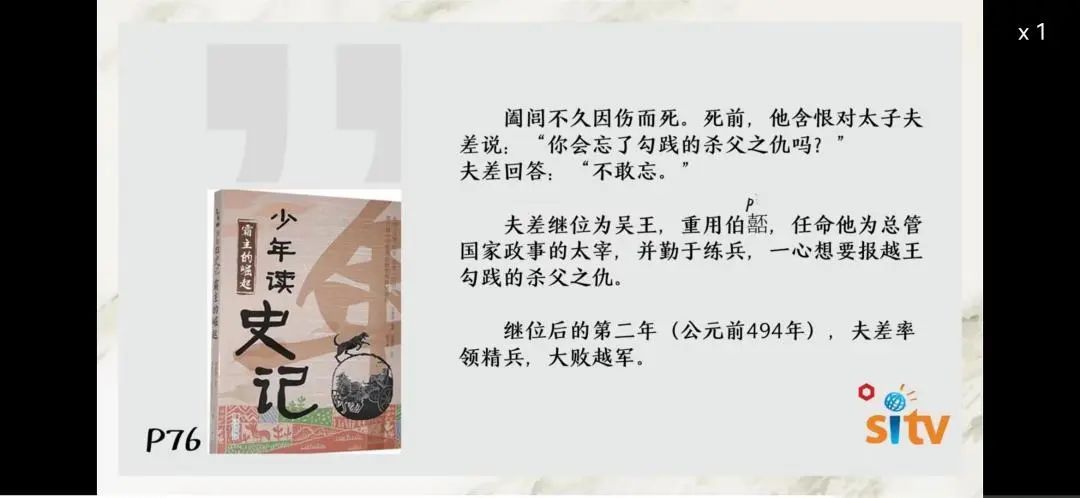 课程中,两位导师以《少年读史记》这本书为基础,引入历史大事件以及相关的文物佐证,通过培养学生正确的阅读方法,以及观察文物和思考历史的方式,让孩子们完成知识的掌握。