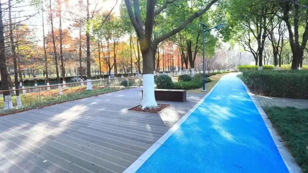 北横泾两岸全长六公里的新虹街道环社区绿道已经建成。绿道还结合周边环境建造了反映当地文化历史、社区状况的景观小品。垂落的树影下,居民们可以吃完饭后来这里散步,十分惬意。