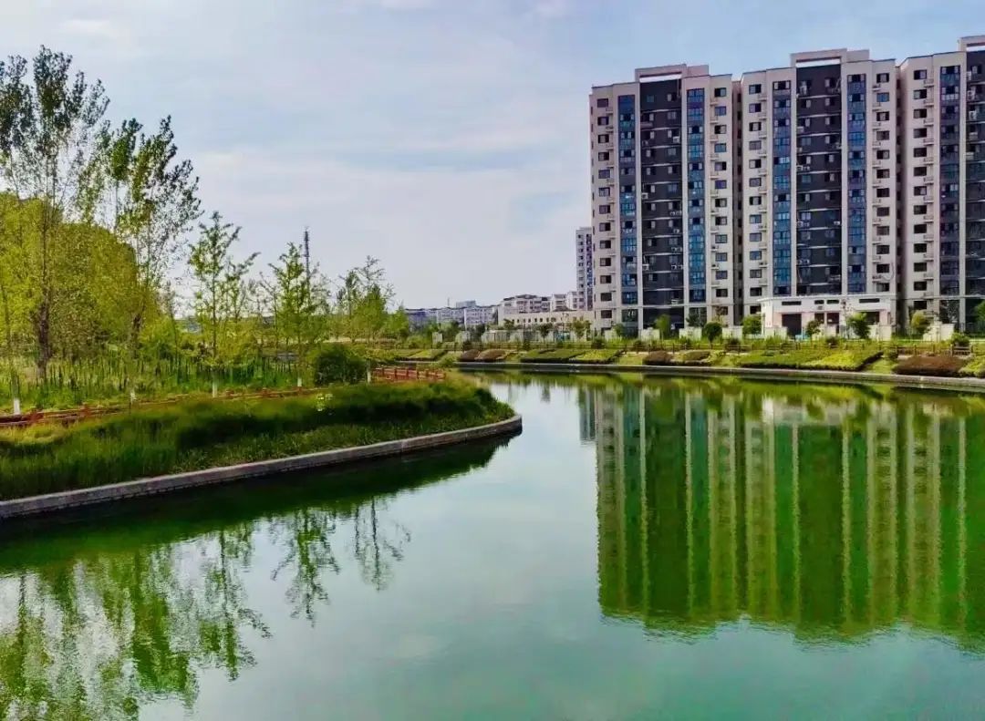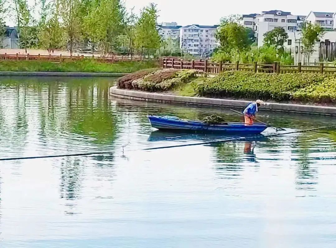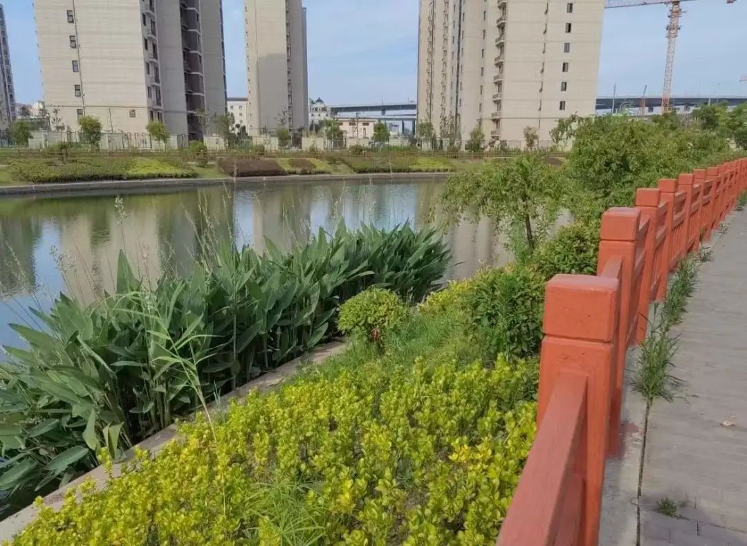 作为“长江经济带最美河流”,小涞港河水清澈。河两岸是高楼林立的绿化带。