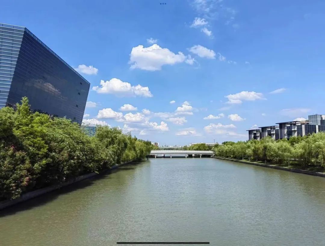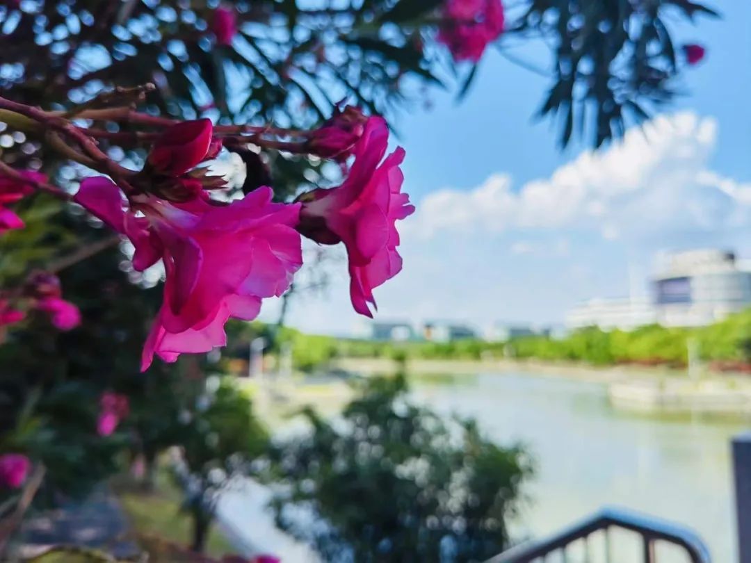 北横泾虹桥商务区段种植了具有季节特色的河道绿化,每个季节都有各自的特色。如今正值夏季,碧水蓝天、树木茂盛、鲜花盛开。伴随着早晚适宜的温度,可以携家人邀好友漫步于此,一同欣赏这里的风光。