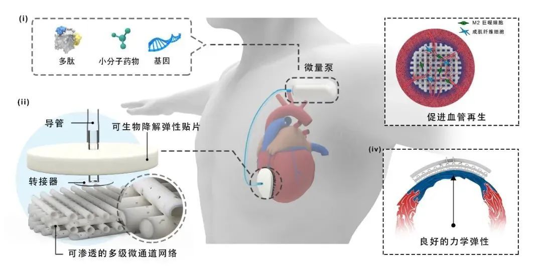 2021年,瑞金医院心脏外科与和东华大学材料科学与工程学院合作,研发出了一种可灌注的多功能心外膜装置,在传统单一的心脏补片基础上增加了内层微通道网络结构,形成薄薄仅几毫米的“三明治”结构。研究团队还整合了给药系统,连接皮下植入的微量泵。由此,医生有望通过皮下植入的微量泵,直接向病人的心脏投递各类治疗物质,包括基因、小分子药物、多肽等生物制剂。该研究成果为心肌梗死及心力衰竭治疗等疾病的治疗开辟了新思路,为下一步临床转化用于治疗心脏疾病打下基础,该研究结果发表于著名的《自然-医学》(Nature Medicine)杂志。