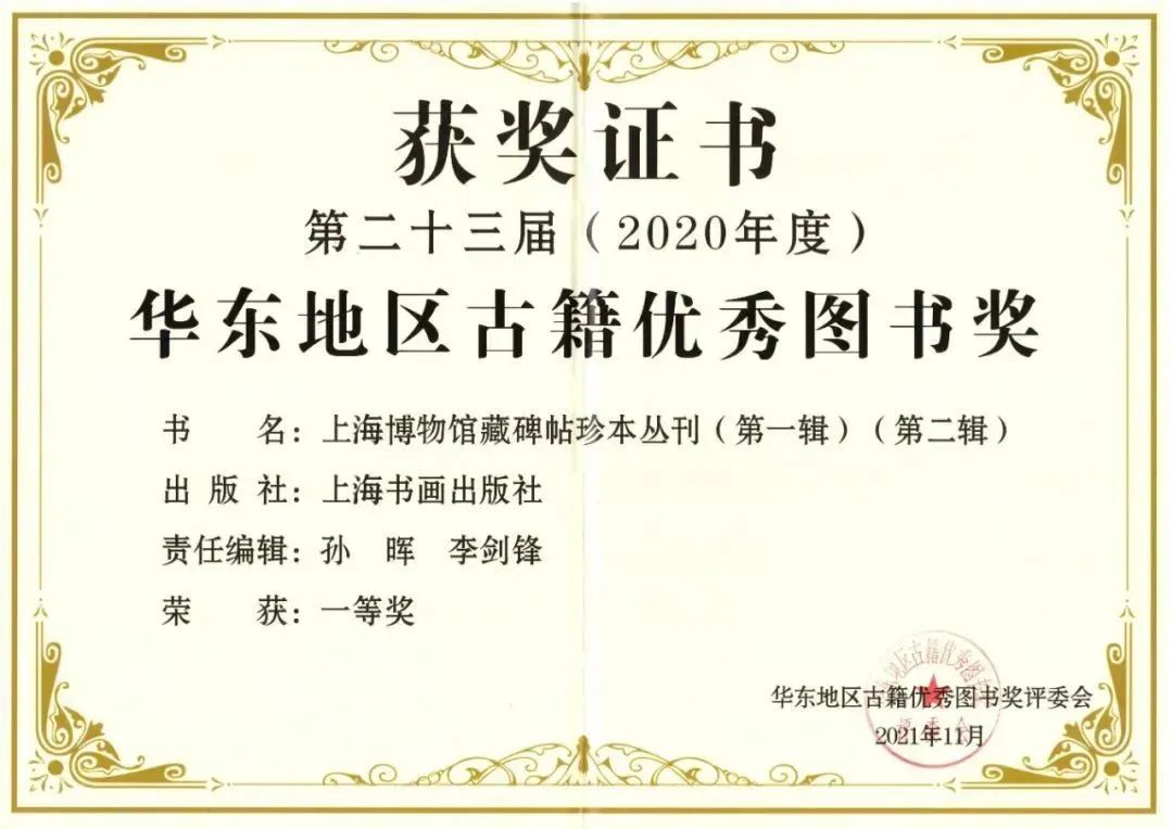 《上海博物馆藏碑帖珍本丛刊》是首次对上海博物馆碑帖珍本进行全面整理和研究性发布,“丛刊”第一辑入选“十三五”国家重点出版规划,并获得第五届中国政府出版奖印刷复制奖提名奖。