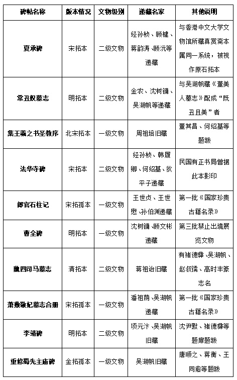 十种碑帖版本统计