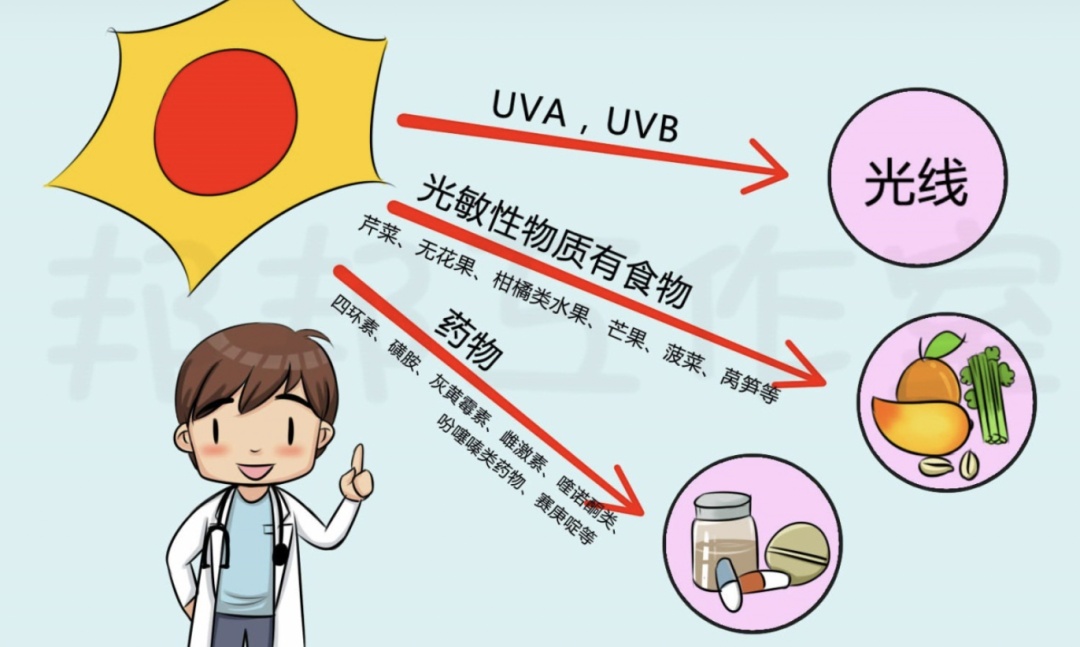 环境因素所致,如在水面上,由于环境往往四周无遮挡,从周围来的反射光较多且很强,这就很容易引发日光性皮炎。