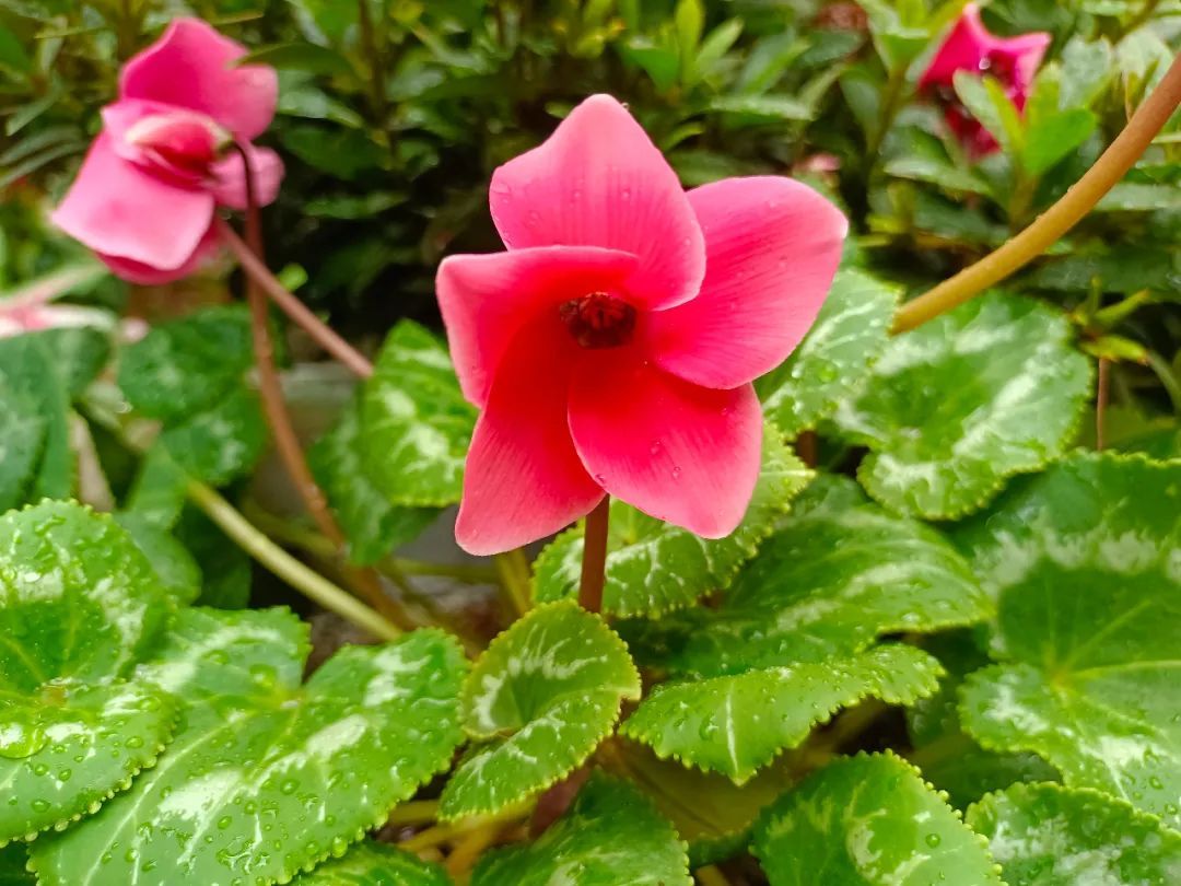 报春花科仙客来属多年生草本植物,“仙客来”一词是音译而来。仙客来花柄向下弯曲,花瓣旋转排列,绽放后五枚花瓣向上反折,形如兔子耳朵,故又名兔子花、兔耳花。