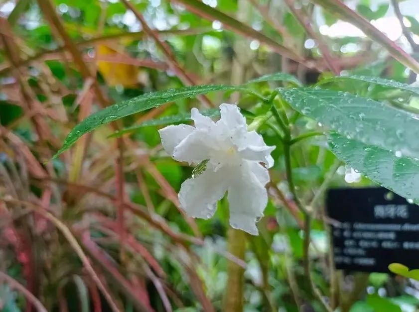 狗牙花是夹竹桃科山辣椒属的常绿灌木,原产于中国南部。狗牙花高达1-3米,具乳汁,花清香俊逸,洁白素雅,边缘有皱褶,仿佛被狗咬过后留下的一圈牙齿印,故名“狗牙花”。