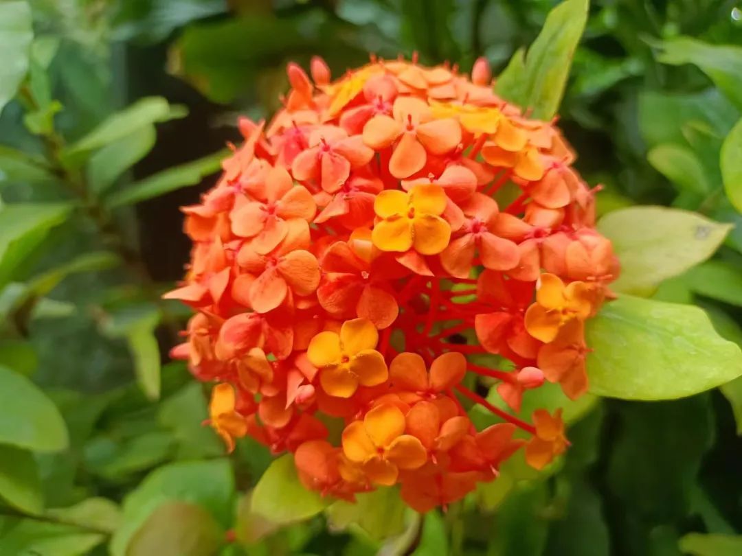 龙船花又名英丹、仙丹花、百日红,茜草科龙船花属植物,是缅甸国花。龙船花植株低矮,但株形美观。花叶秀美,开花密集,有着绣球般的小花,小花们聚拢在一起形成一个大花球。花色鲜红而美丽,花期5-7月,开花最盛的时候正好是端午节赛龙舟的时候,所以有了这个名字。