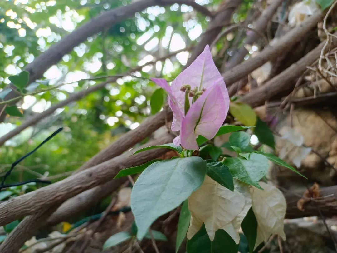 叶子花又名三角梅,藤状灌木,紫茉莉科叶子花属植物。原产于巴西,我国南方栽植于庭院、公园,北方栽培于温室中。苞片呈三角状,淡紫色或洋红色,因其形状与叶子相似,花开在苞片中,故称其为叶子花。