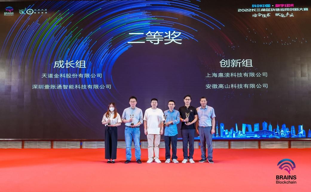 荣获二等奖成长组的是天道金科有限公司、深圳壹账通智能科技有限公司;二等奖创新组的是上海扈渎科技有限公司、安徽高山科技有限公司。