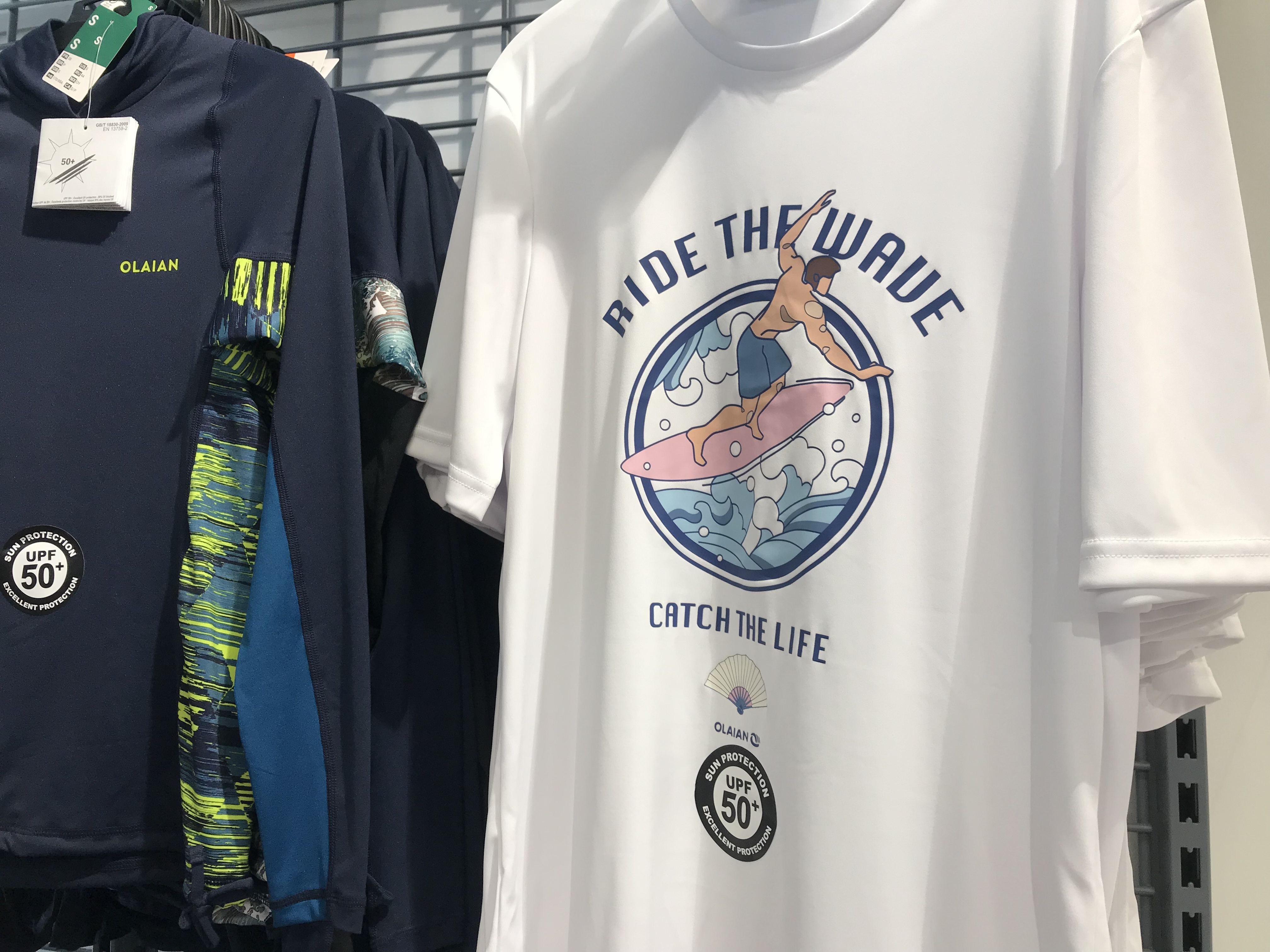 除了泳帽,泳衣的选择也同样很有讲究。“泳衣的选择除了款式以外也有很多讲究,比如我手上拿的这款泳裤,它的防氯性就很好,非常适合室内泳池使用,像这款冲浪服则更加适合户外使用,它的功能性更偏重于防晒和防磨。”潘能超介绍道。