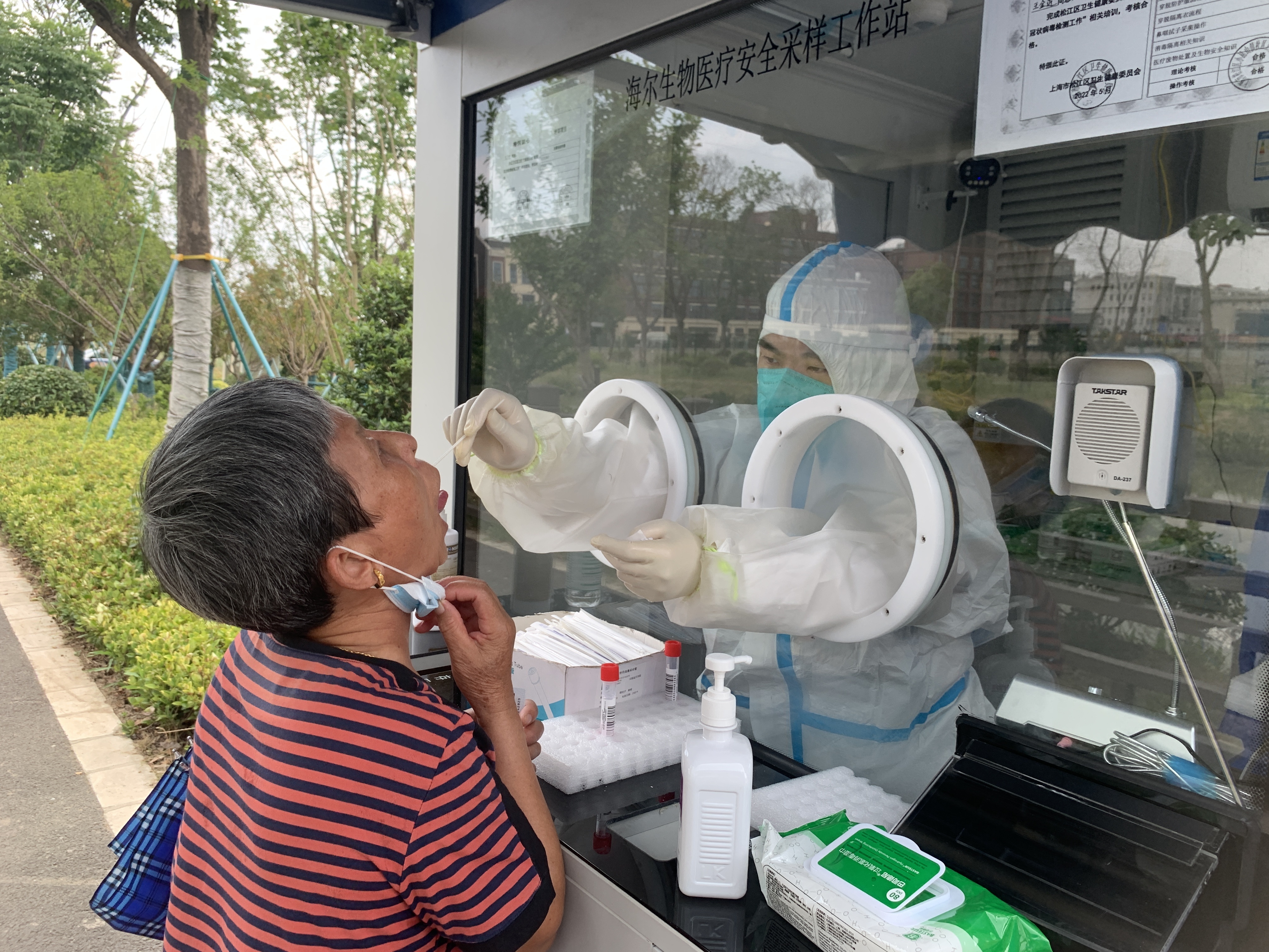 张卫军是一名来自上海科学技术职业学院的学生,他的父亲张林是社区静态管理期间招募的志愿者,在社区防疫的每个岗位上几乎都能看到他的身影。深受父亲影响的张卫军暑期第一天便主动报名加入社区志愿者服务队,经过专业培训后成为了一名合格的核酸采样辅助人员。“每次看到我爸兢兢业业参加门岗守护、物资配送、抗原核酸筛查等工作,我就深受鼓舞,我也要像他那样为大家作贡献。”