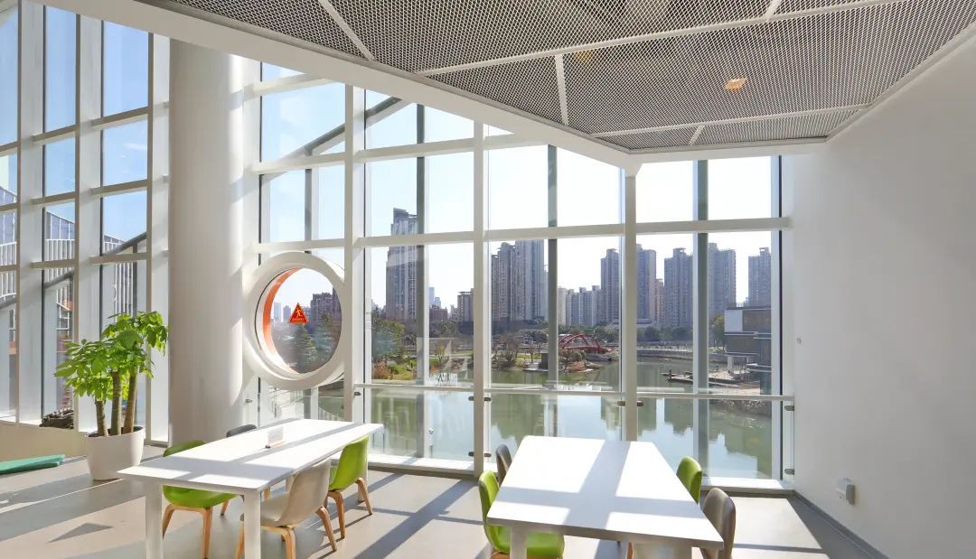 长风馆突出“乐学”“乐享”“乐创”三大服务理念,竭力建成文绿融合、动静分区的智慧型少儿图书馆,建设对标国际卓越城市的上海文化场馆新地标。作为“苏河水岸”的新亮点,这一没有围墙的新空间,与周边丰富文旅资源共同构成苏河左岸艺术亲子体验区,孩童身在其中,四周美景尽收眼帘,丰富知识映照心底,增添了陶冶心灵的新途径。长风馆还通过大小空间交融,打造“阅读森林”概念,以合理布局分层阅读,营造轻松学习氛围,结合细节设计,引导孩童释放天性。
