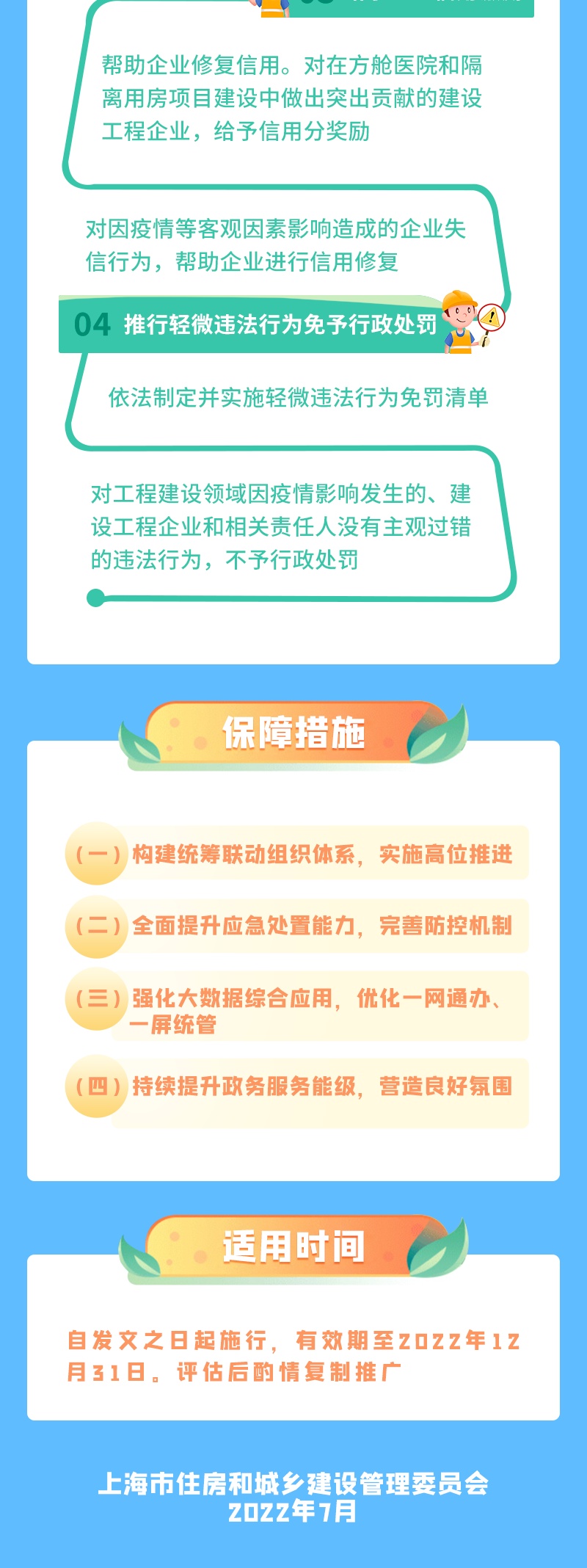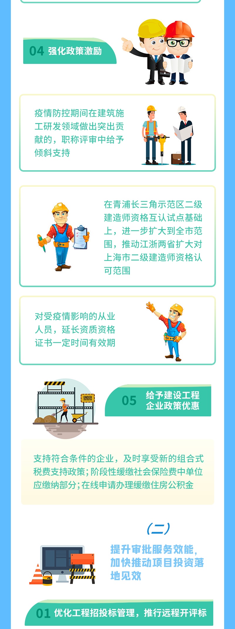 为持续激发建筑市场主体活力,积极助推建筑业经济恢复和健康发展,市住建委制定出台《关于加快本市建筑业恢复和重振的实施意见》,包括工作原则、主要举措、保障措施、适用时间等四个方面,15条主要举措。具体内容,一图了解↓
