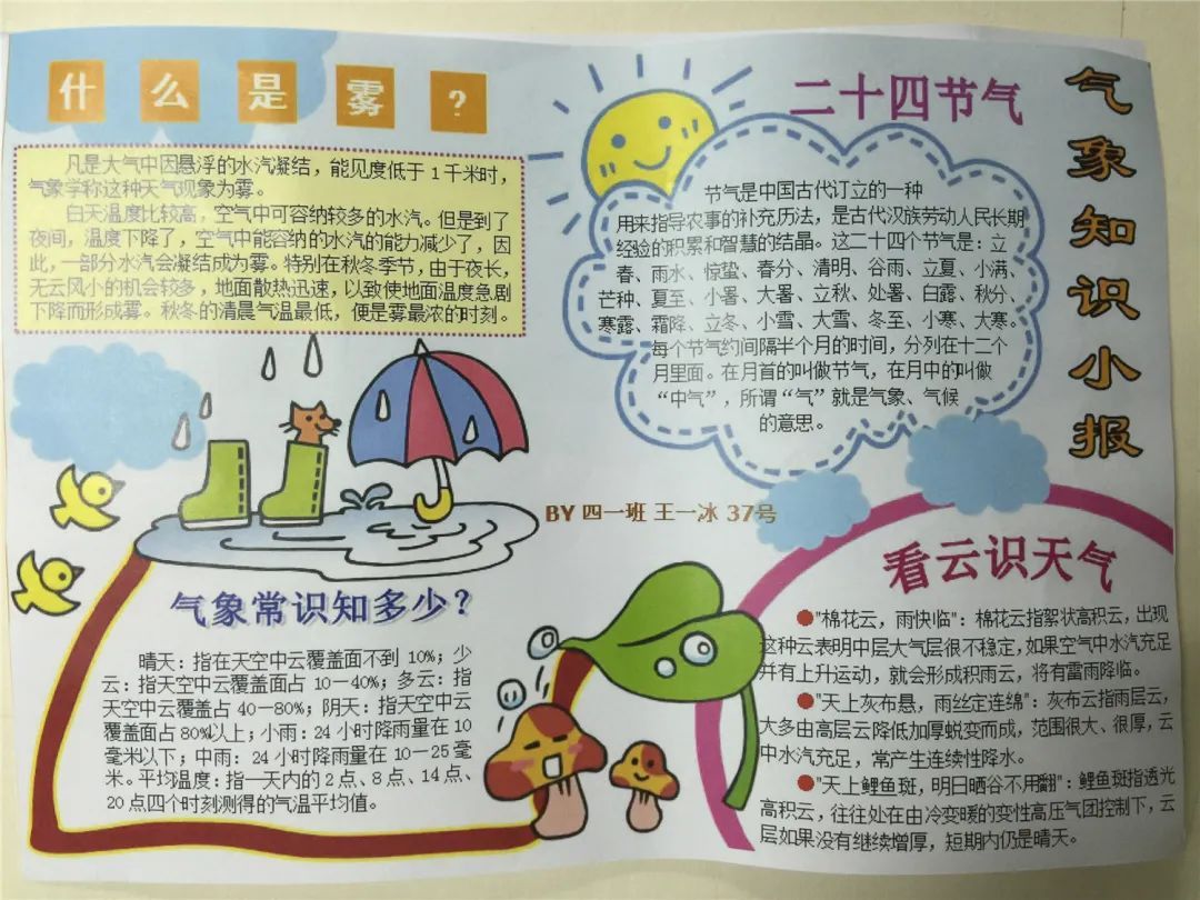 要填好每天的气象观测表也并非易事。除了要填报一些必要的数据,比如一天的最高最低气温、风向、降水量之外,孩子们还需要对这些数据进行一些简单的分析,可以是对比性质也可以是图文性质,但这对于孩子们来说都颇具挑战。为此,指导老师和家长组建了沟通群,在群里转发一些比较官方的公众号的信息,比如上海气象、上海预警发布等等,让孩子们可以参考一些专业的术语和文字的组织。渐渐地,孩子们熟能生巧起来,从一开始只是简单地对一天里的数据进行分析,到后来慢慢加入了自己的所见所闻所思所想:“今天周一,学校有升旗仪式,天气有点暖和”“今天风有些大,大家都穿上了冬装”等等一些更为生动和儿童化描述出现在了他们的记录中。