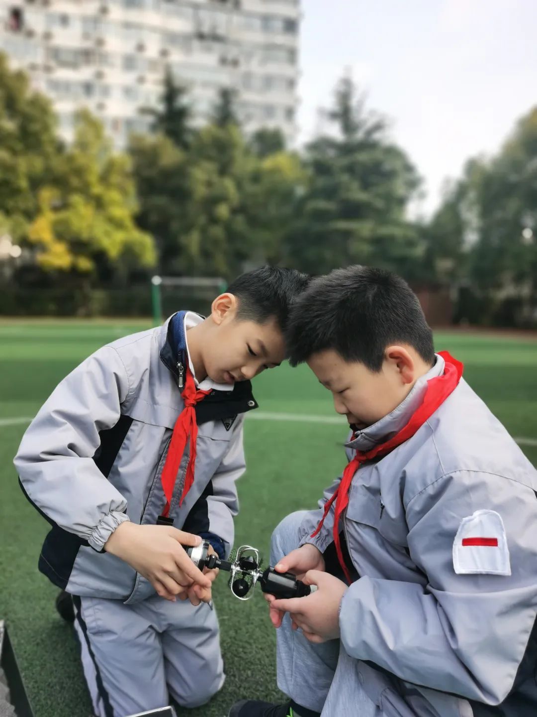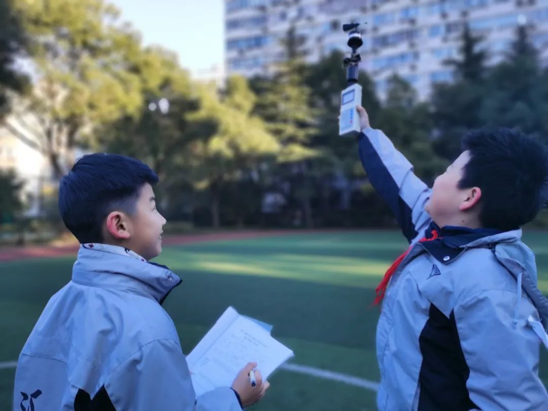 活动开始的时候正值一月,为了做好数据记录,孩子们需要每天清晨提前到校,把作业摆放在桌面后,就立刻去实验室取设备,随后去操场进行观测和记录,下午的观测则在第三节课后的托管时间进行。随着春节的临近,天气越来越冷,好几次值班的老师看到天刚蒙蒙亮,孩子们就裹着围巾,穿着厚厚的冬装,蜷缩着手脚顶着寒风到学校进行观测,“有时候刮风下雨,有时候放学需要他们留下观测,他们一次都没有缺席。”看到孩子们的认真劲,老师们都格外感动。而孩子们也从开始的生疏到逐渐熟练,在讲解与实操中真正领会每项仪器的使用、每组数据的意义。有时成功预测到第二天的天气,他们就像押到宝了一样开心。