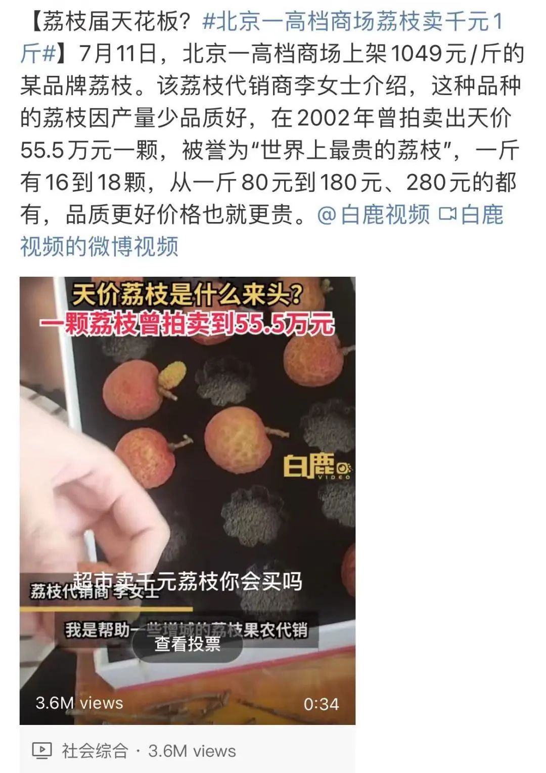 最近,一种天价荔枝登上了微博热搜——