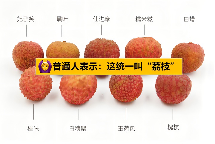 除了“增城挂绿”,我国还有很多荔枝品种,但普通人乍眼一看,这些长相相似的果子都统称“荔枝”。