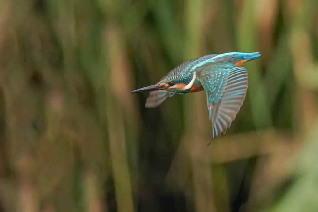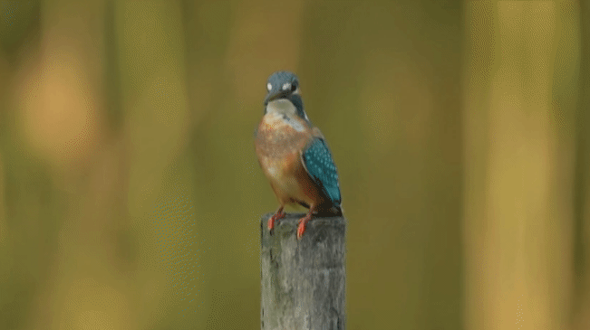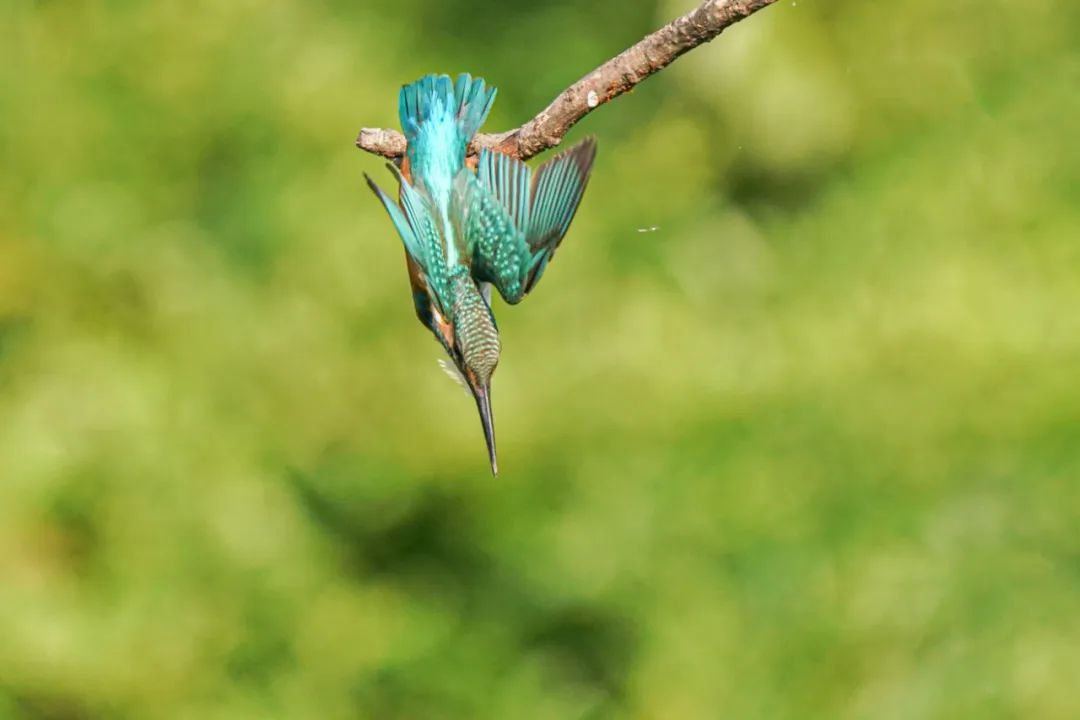 翠鸟喜欢停在水系旁边的植物枝条上,小朋友学的《翠鸟》课文中是这样描述的:“翠鸟蹬开苇秆,像箭一样飞过去!”它找到落脚点后,就开始打量着水面,一旦发现目标,一个猛子扎入水中,捕鱼一气呵成,出水后叼着鱼的神态十分傲娇。