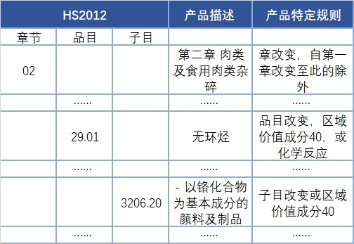 产品特定原产地规则(PSR)是这个样子的: