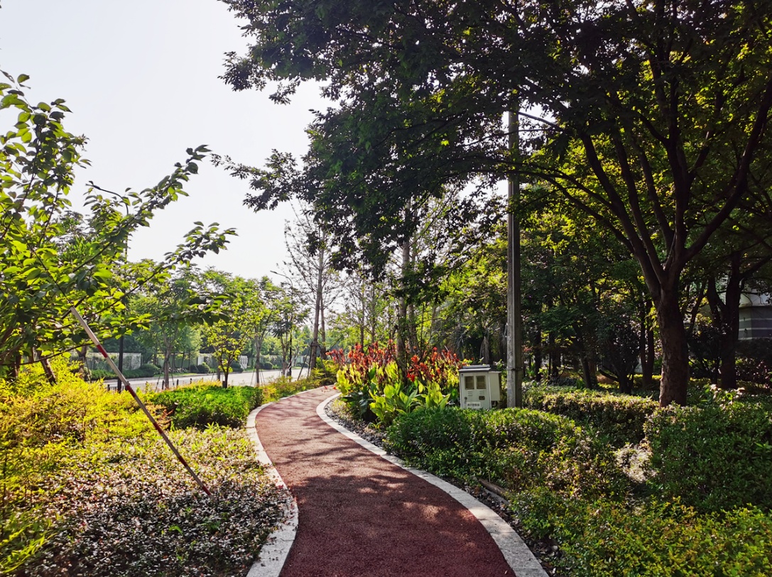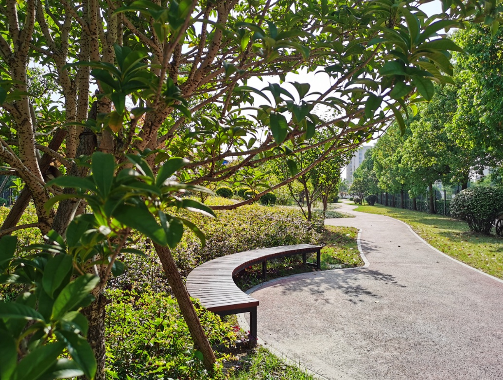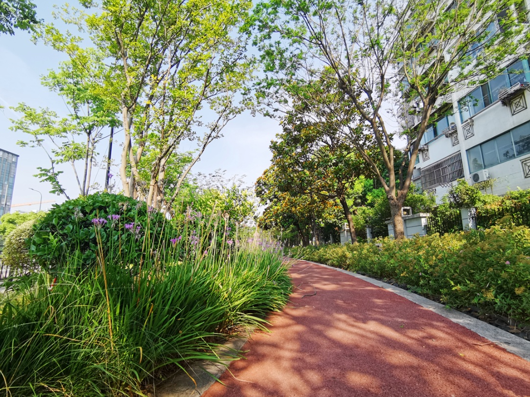 步道虽然不长,但是功能十分完善,林立的树木与路旁的鲜花绿植将小道装点得静谧养眼。