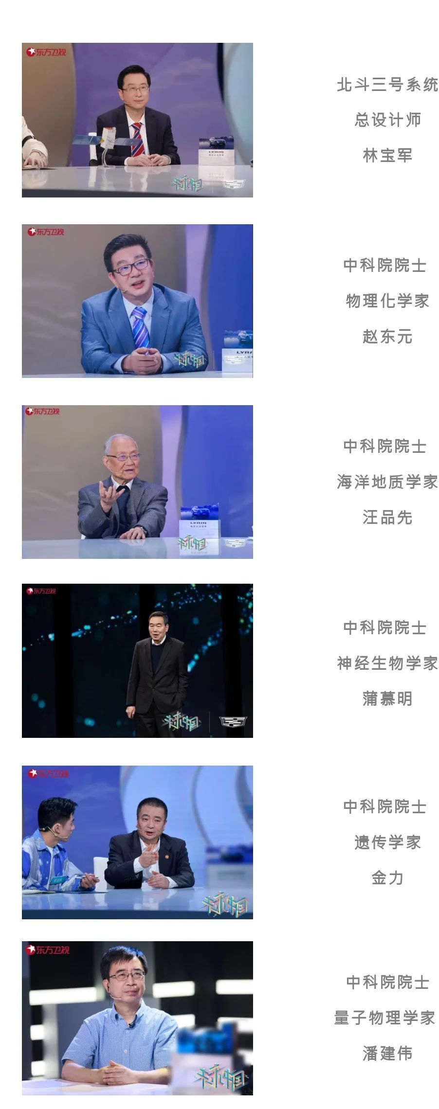 科学榜样中,包括中国科学院院士、中国科学院脑科学与智能技术卓越创新中心学术主任、上海脑科学与类脑研究中心主任蒲慕明,中国科学院院士、中国科学院地学部副主任汪品先,中国科学院微小卫星创新研究院副院长、北斗三号系统卫星总设计师林宝军,中国科学院院士、复旦大学教授、国家自然科学奖一等奖获得者赵东元等,涵盖了物理、生物、计算机、航天等多个领域。